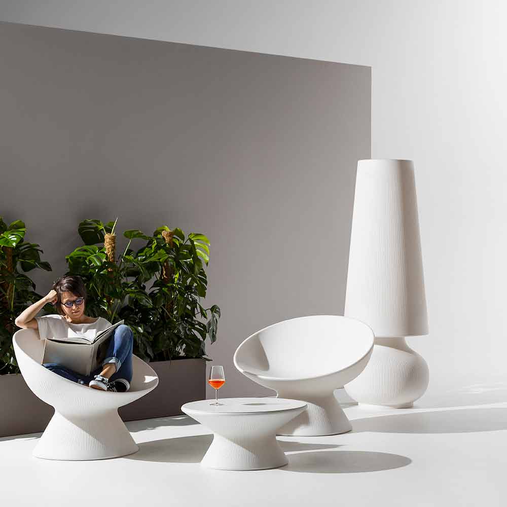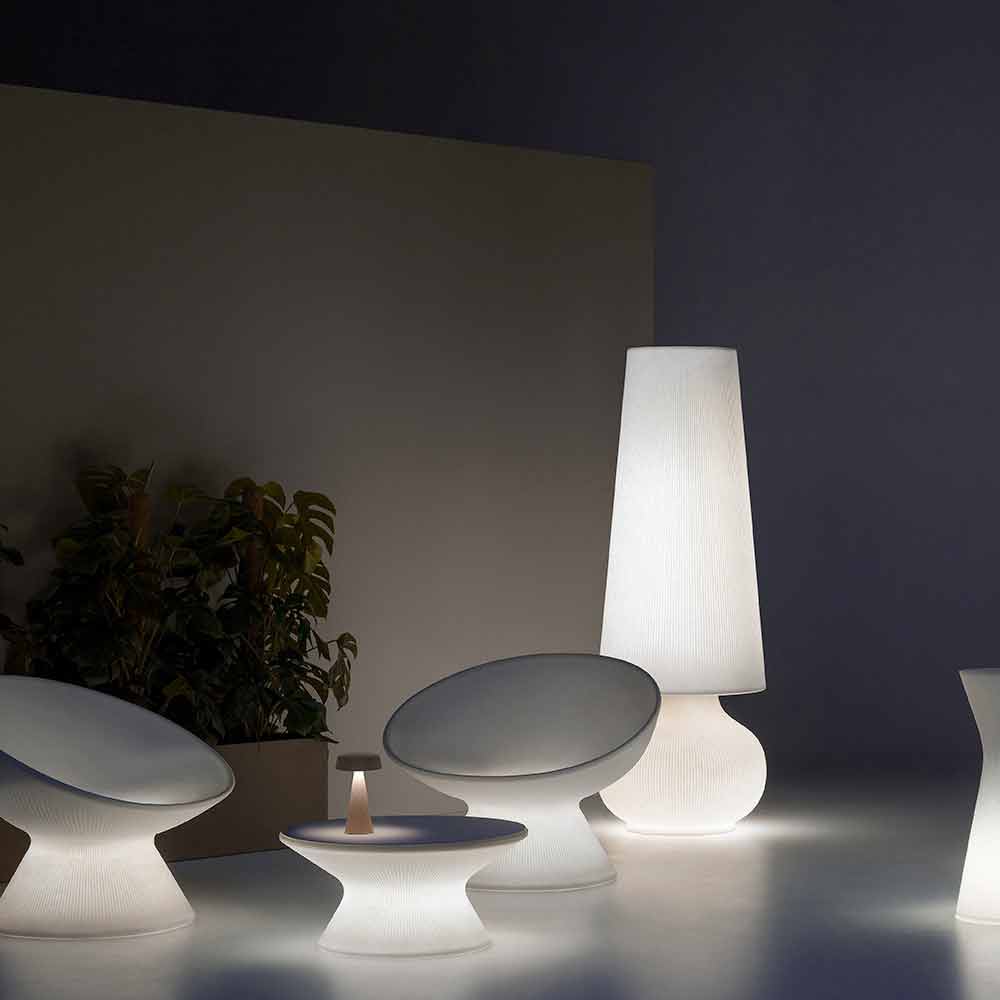 Stehlampe zur Einrichtung von Außenräumen made in Italy aus weißem Polyethylen. Diese Lampe mit skulpturaler Präsenz zeichnet sich durch ein elegantes und modernes Design aus und ist eine perfekte Einrichtungslösung für Außenumgebungen wie Gärten und Terrassen oder Vertragsräume, in denen es notwendig ist, die Ästhetik mit einer innovativen und originellen Note zu bereichern.