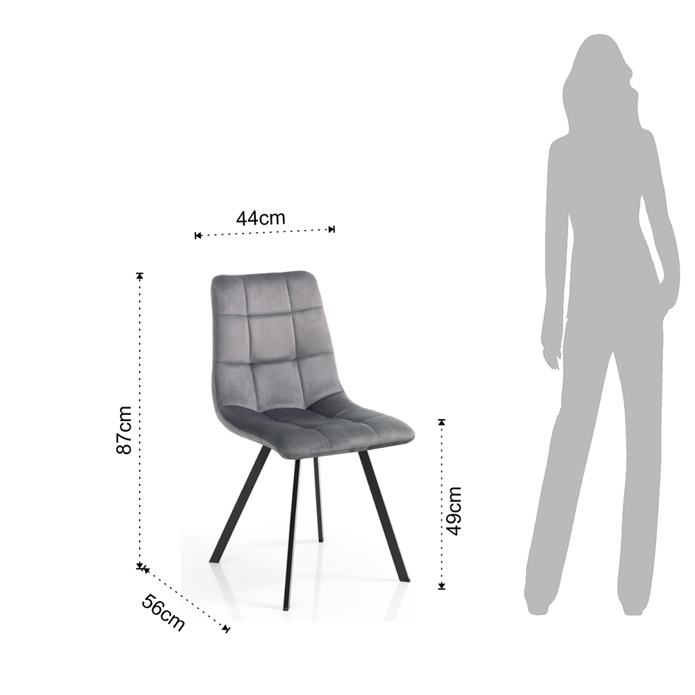 Esszimmer- oder Küchenstuhl aus Metall und Mikrofaser mit Samteffekt, 4 Stück.