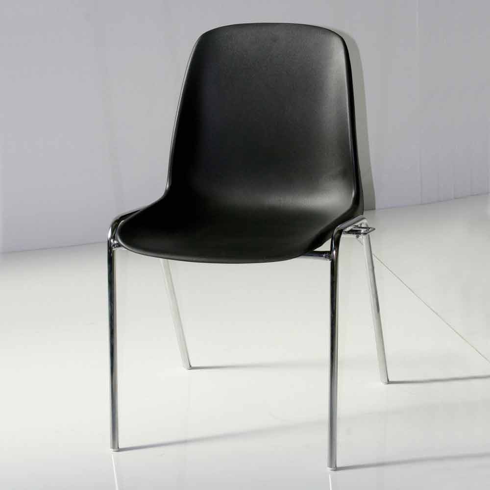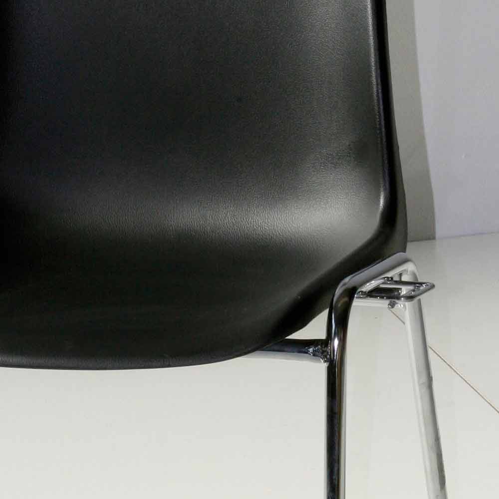 Moderner Besprechungs- oder Konferenzstuhl aus verchromtem Metall und schwarzem feuerfestem ABS.