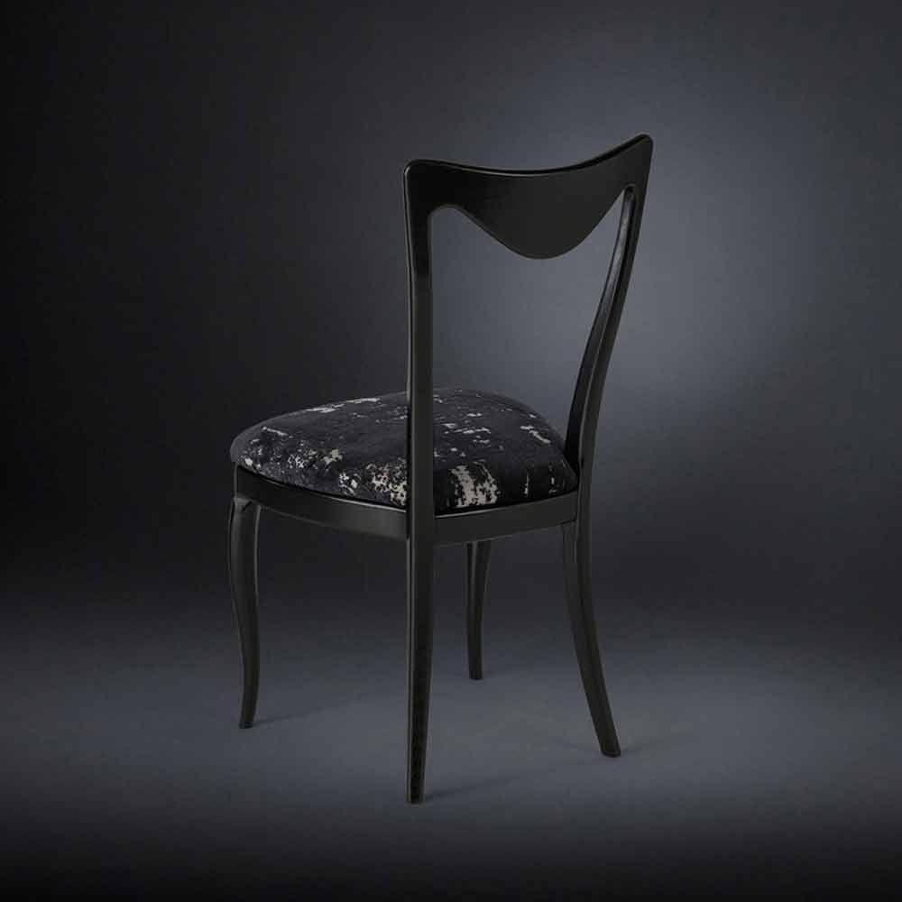 Das Gestell der Stühle aus matt schwarz lackiertem Holz mit einer Polyurethanschaum Polsterung.