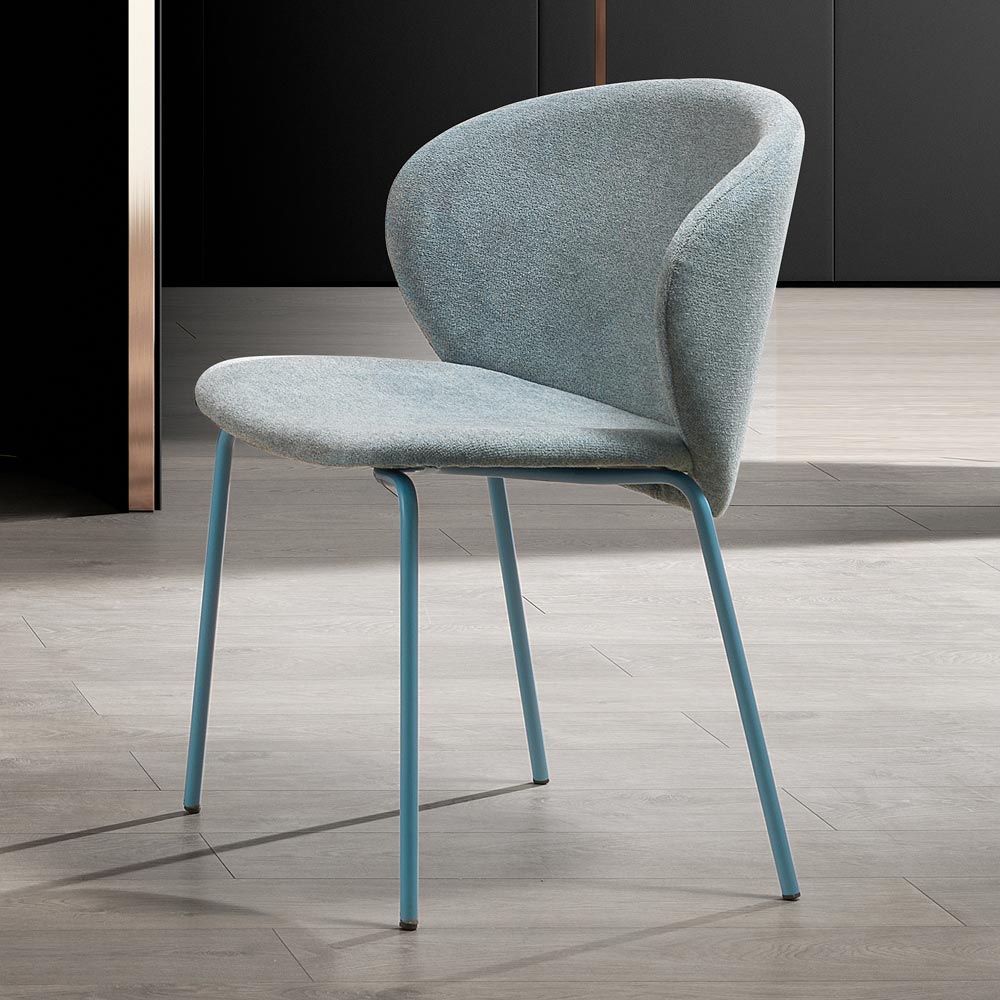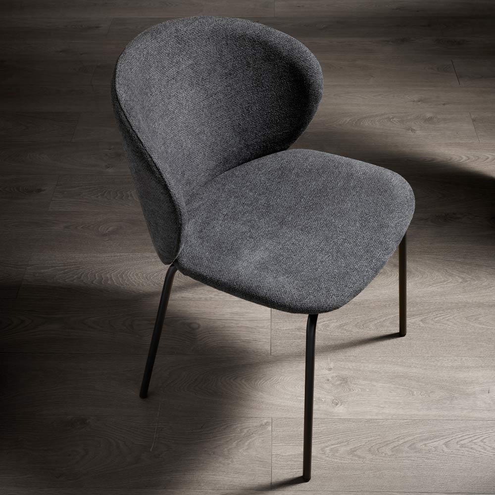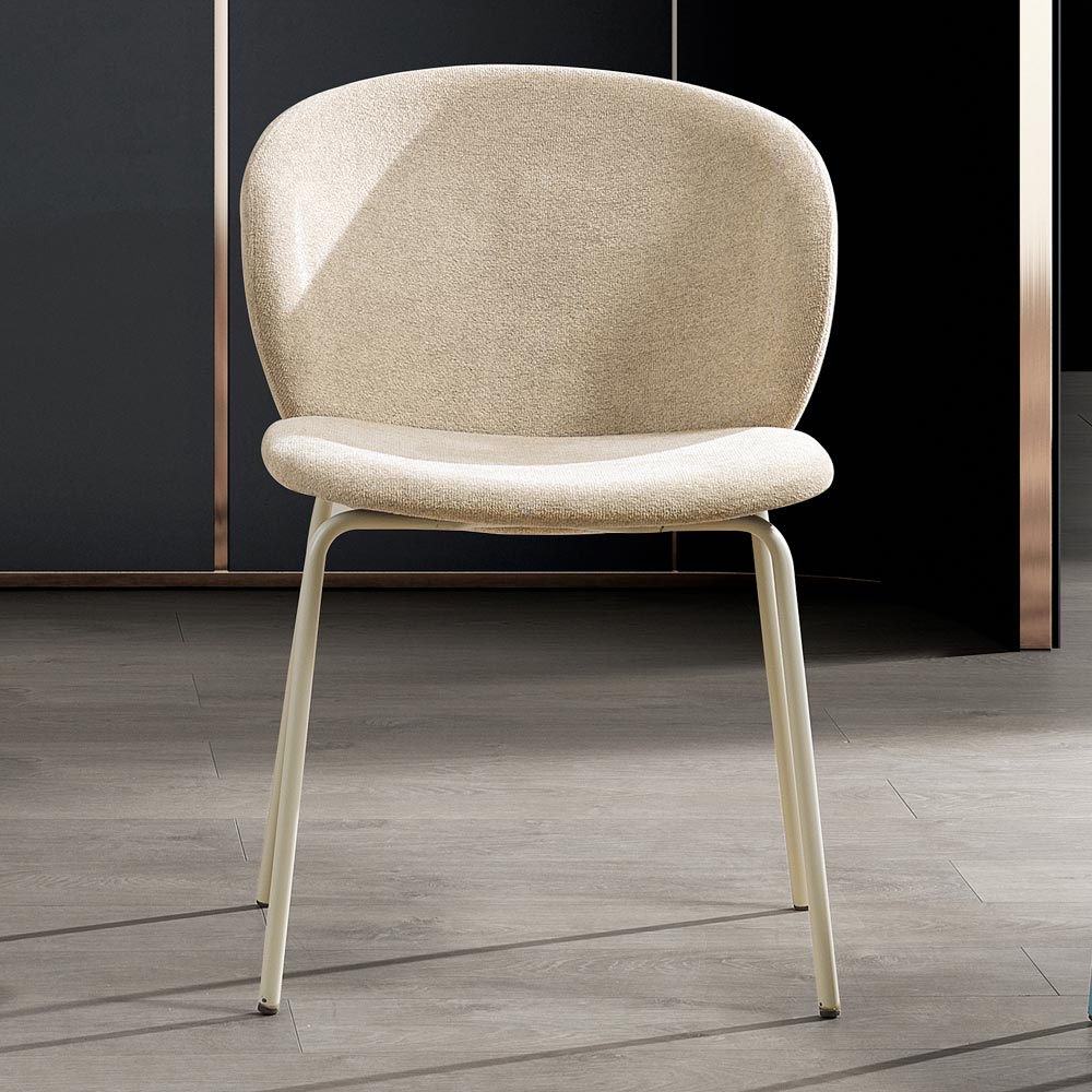 Die schlanken Metallbeine verleihen dem Stuhl subtile Eleganz und solide Stabilität, ein Materialkontrast, der sowohl an industrielle Moderne als auch an skandinavische Natürlichkeit erinnert. Es ist ein Stuhl, der jeder Umgebung einen Hauch müheloser Eleganz verleiht.