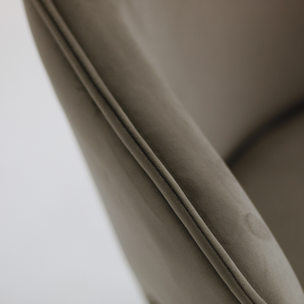 Sitz und Rückenlehne: V15 Nerzsamt und Beine: aus Eschenholz mit Canaletto-Walnuss-Finish