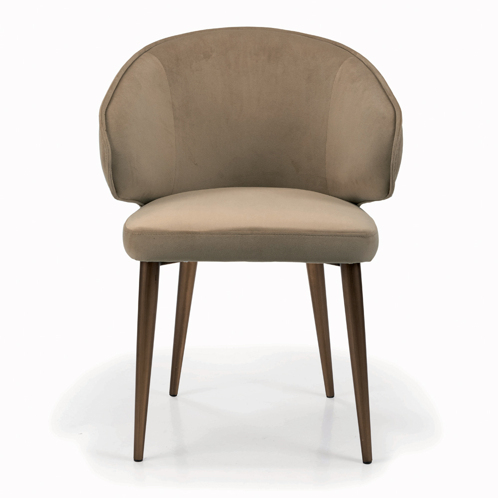 Wohnzimmerstuhl mit Sitz und Rückenlehne aus Stahl, komplett mit Samt bezogen, und Beinen aus lackiertem Stahl oder Eschenholz. Ein Einrichtungsaccessoire, das sich leicht an jeden stilistischen Kontext anpasst, in den es eingefügt wird, und dazu beiträgt, eine einzigartige und stilvolle Atmosphäre zu schaffen. Die ästhetische Leichtigkeit, die sein Design auszeichnet, macht es perfekt, um Wohnräume wie Esszimmer und Küchen, aber auch Objektbereiche wie Bars und Restaurants durch seine einfachen und raffinierten Formen mit Persönlichkeit zu vervollständigen.
