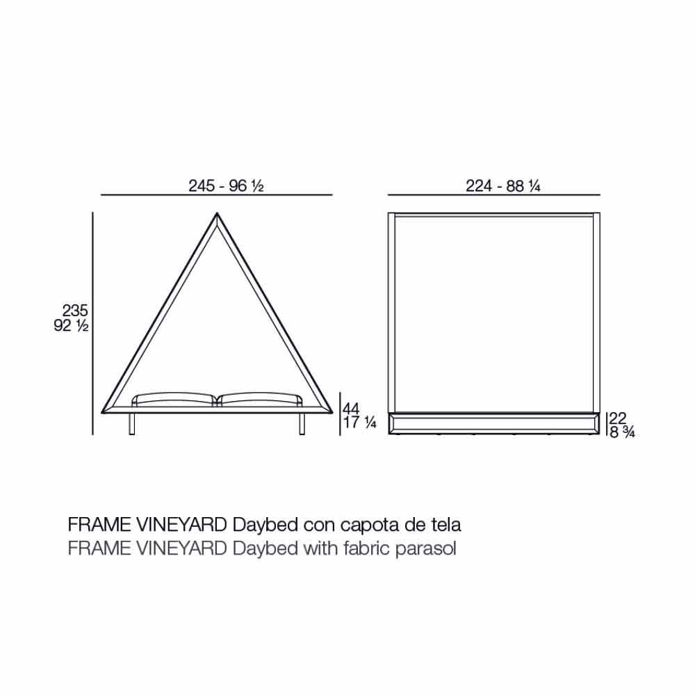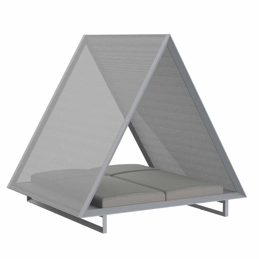Doppeltes Tagesbett für den Außenbereich mit luxuriösem Design, Aluminium- und Stoffstruktur.