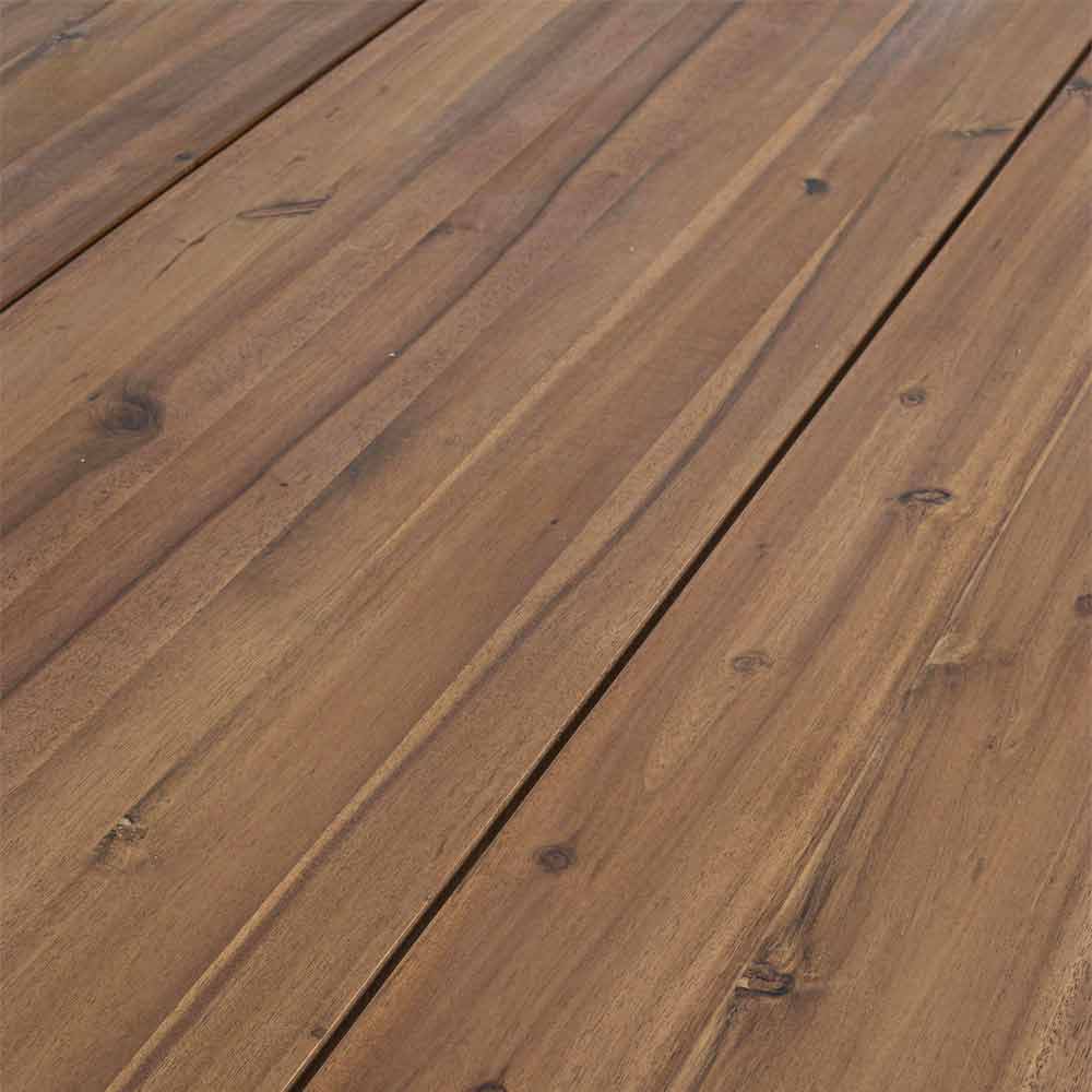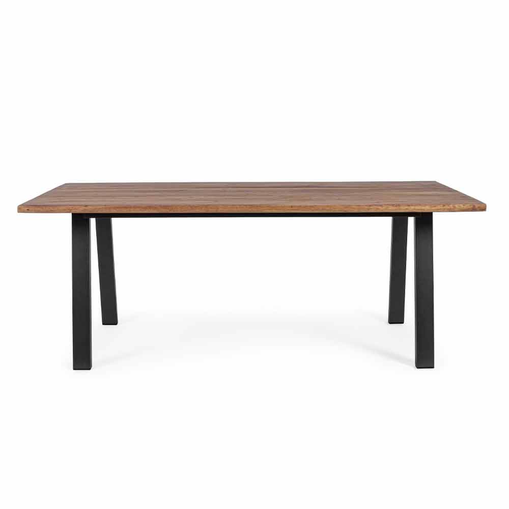 Esstisch im Freien aus Akazienholz und verzinktem Stahl.