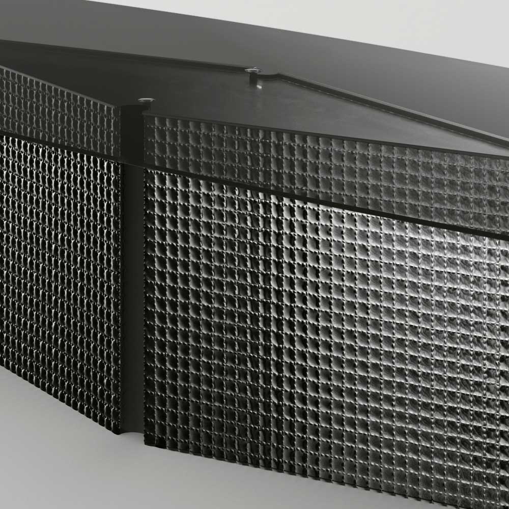 Metallstrukturelemente des Untergestells sind mattschwarz lackiert. Die