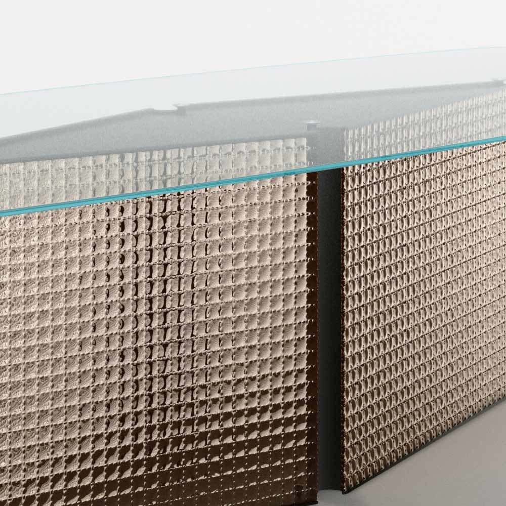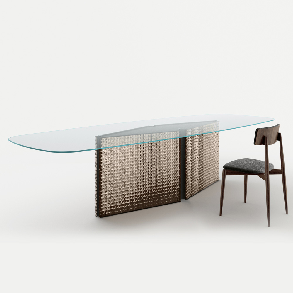 Geformter Tisch aus gehärtetem Glas und Sockel aus geschmolzenem Glas