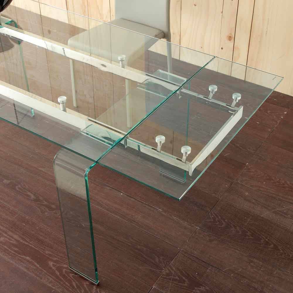 Tisch mit Hartglas Tischplatte ausziehbar in modernem Design Lord