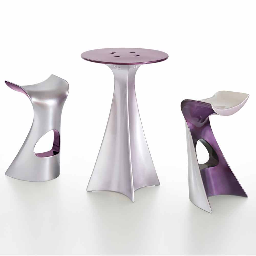 Der Stehtisch JET NEXT hat ein modernes und zeitgemäßes Design. Dieses von Karim Rashid entworfene Produkt ist der perfekte Partner für den ikonischen Koncord-Hocker. Um das zehnjährige Jubiläum der Zusammenarbeit zwischen Slide und dem vielseitigen Designer zu feiern, wird eine spezielle zweifarbige Metallic-Lackversion geboren. Die silberne Basis verschmilzt mit der violetten Spitze. Für Möbel, die Spuren hinterlassen, ermöglicht Ihnen die Next-Kollektion , zwei verschiedene Seelen zu kombinieren: eine visionärere und futuristischere, die durch die Formen von Jet und Koncord gegeben wird, und eine elegantere und einzigartigere, die durch die besondere und fast schillernde Lackierung gegeben wird Farbe der 'Sonderedition.