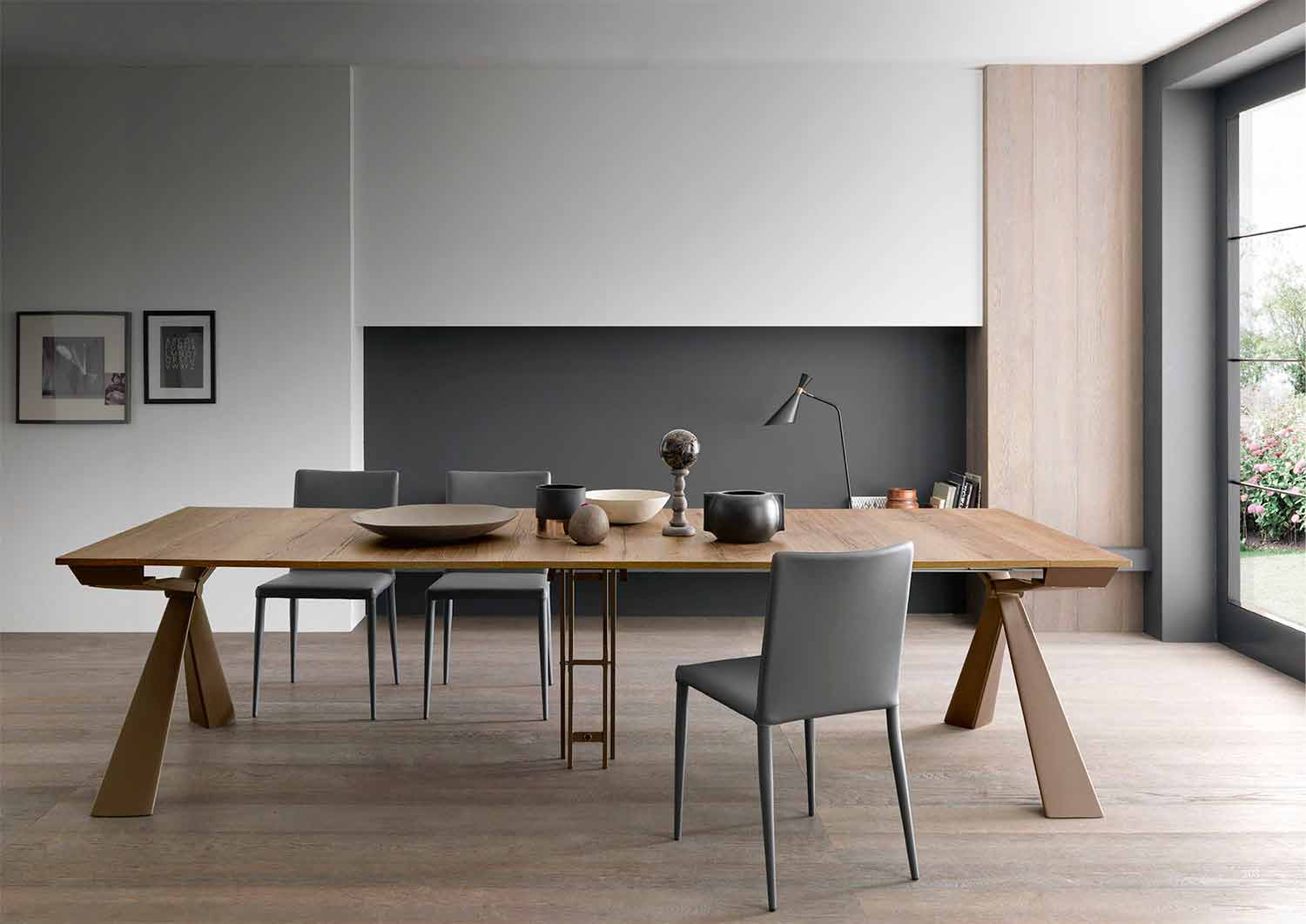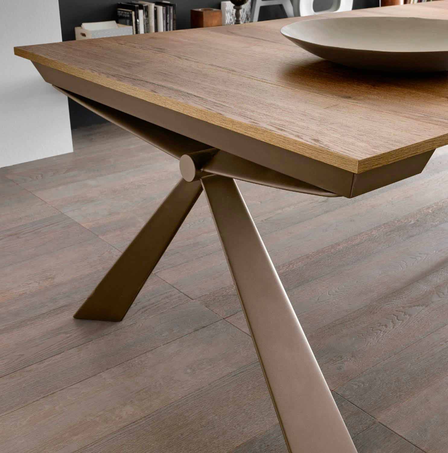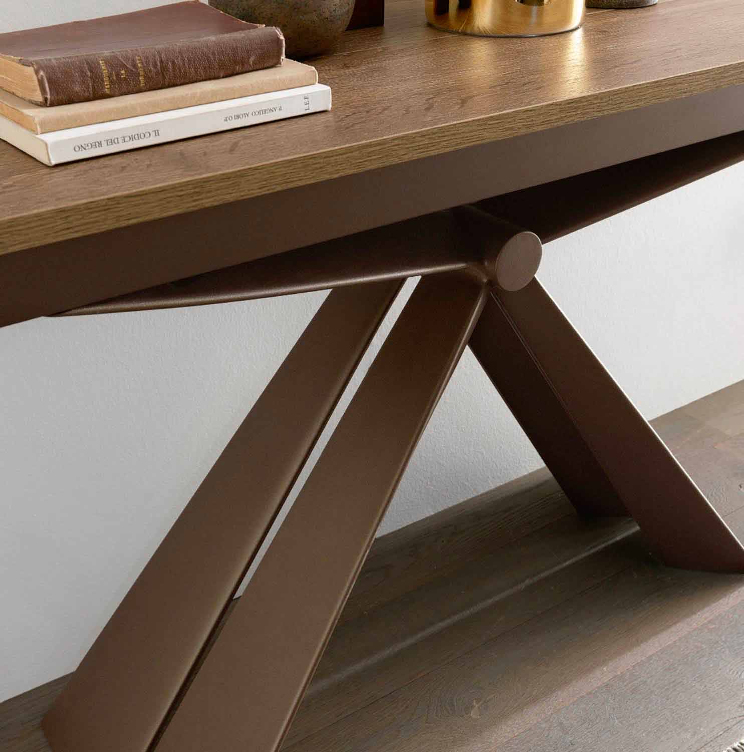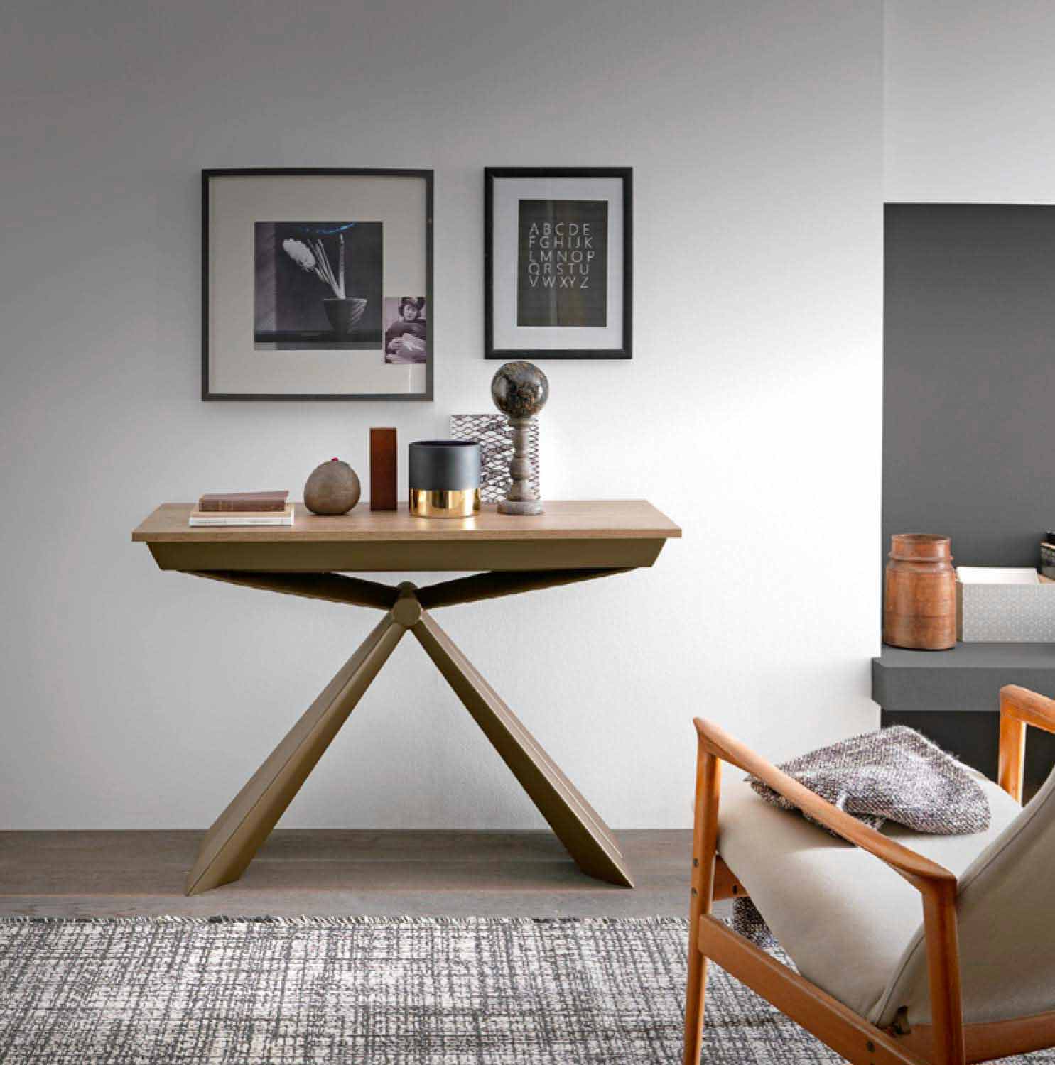 ausziehbare Konsole zeichnet sich durch ein skulpturales Design aus, dank der Form der Metallstruktur, die ihre Linien in einem zentralen Knoten zusammenführt.