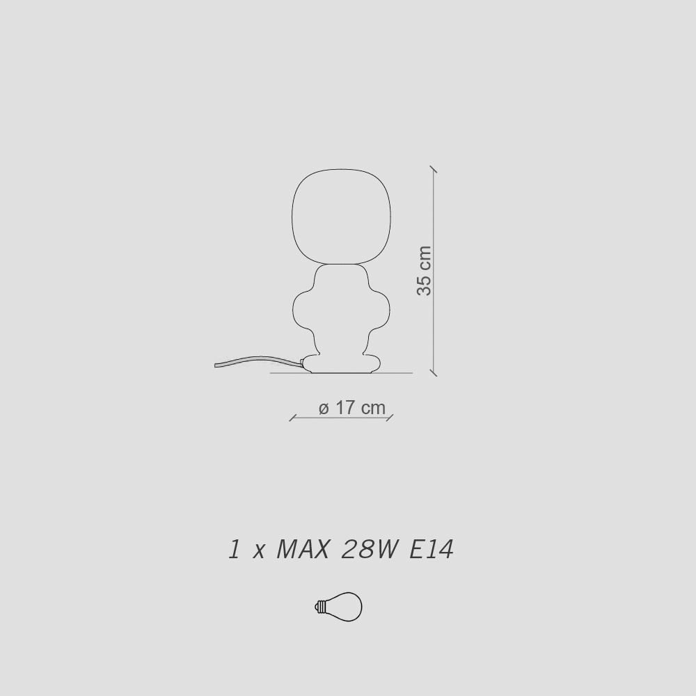 Tischlampe aus farbiger Keramik , Diffusor aus satiniertem Opalglas und weißem PVC-Kabel, vollständig in Italien hergestellt.
