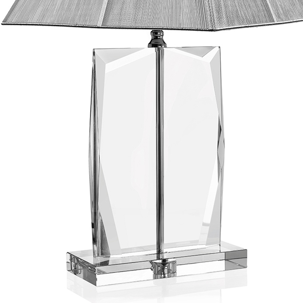 Kristall-Tischlampe mit quadratischem silbernem Lampenschirm in 2 Größen.
