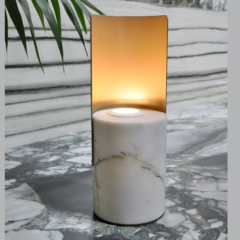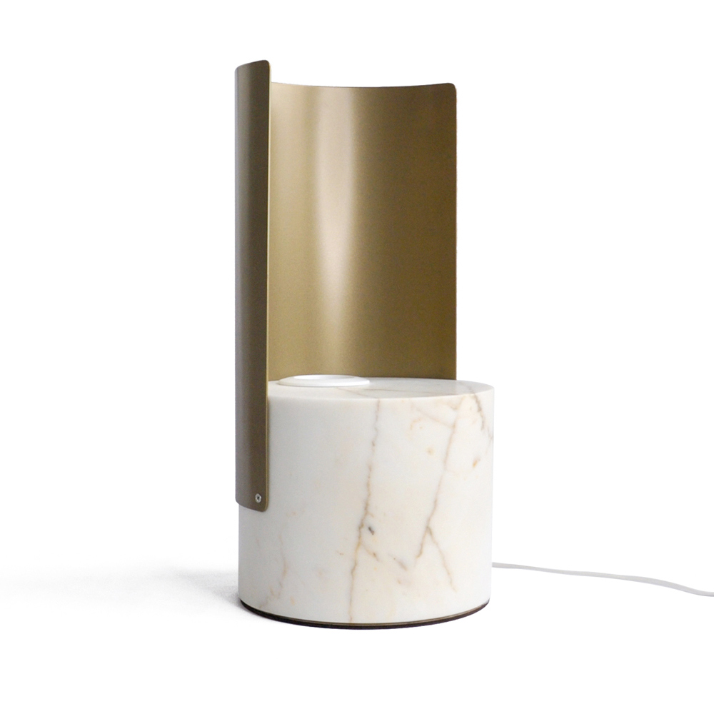 Stellen Sie sich eine Lichtquelle vor, die gleichzeitig ein Kunstobjekt ist: Hier ist diese Marmorlampe , eine Kreation, die die natürliche Eleganz von Marmor mit der warmen Lumineszenz von Metall verbindet. Der solide und sorgfältig verarbeitete Marmorsockel trägt einen Metallschirm, der ein einladendes und warmes Licht verbreitet und eine entspannende und anspruchsvolle Umgebung schaffen soll.