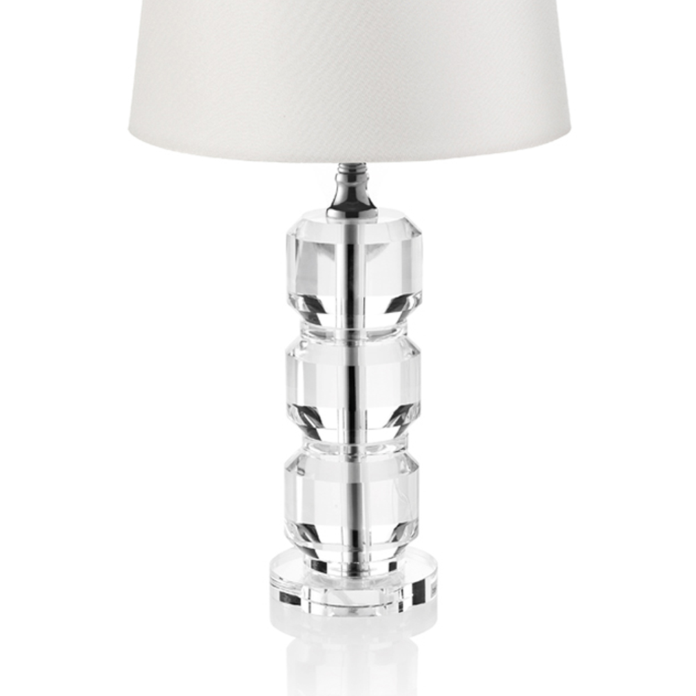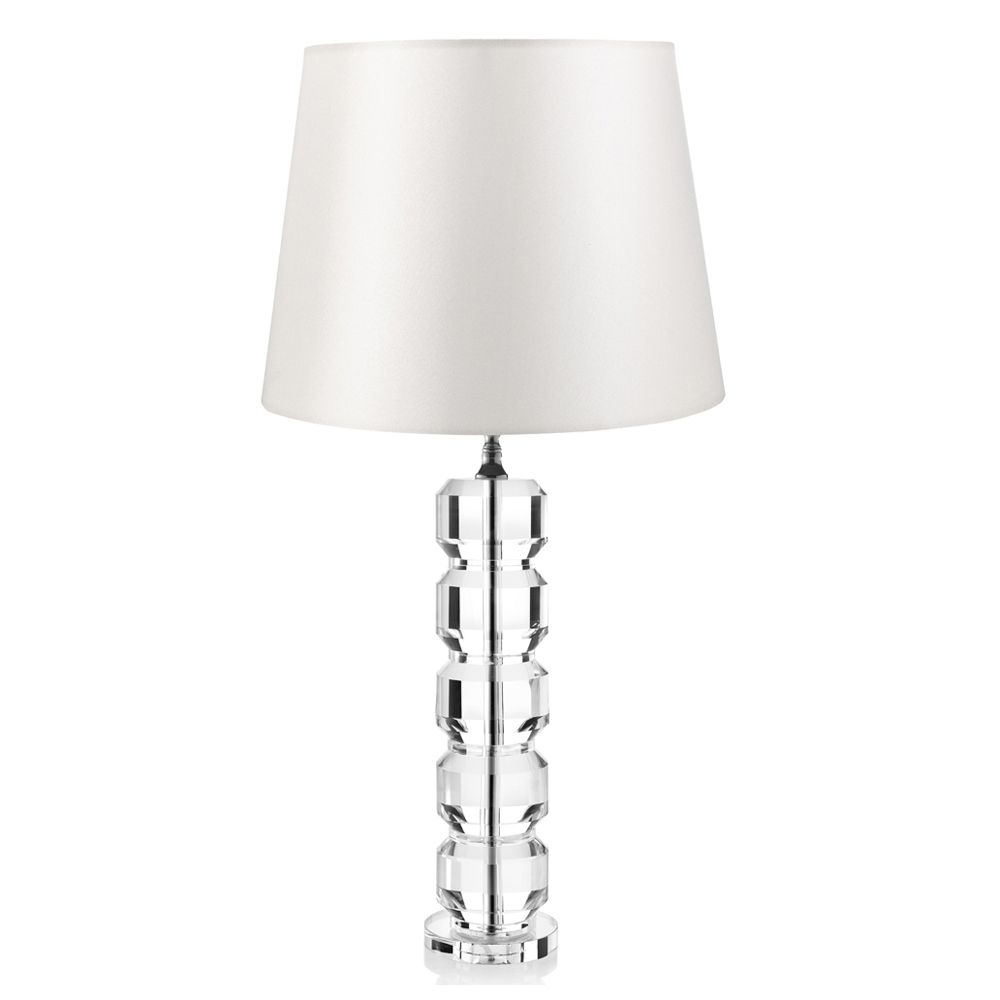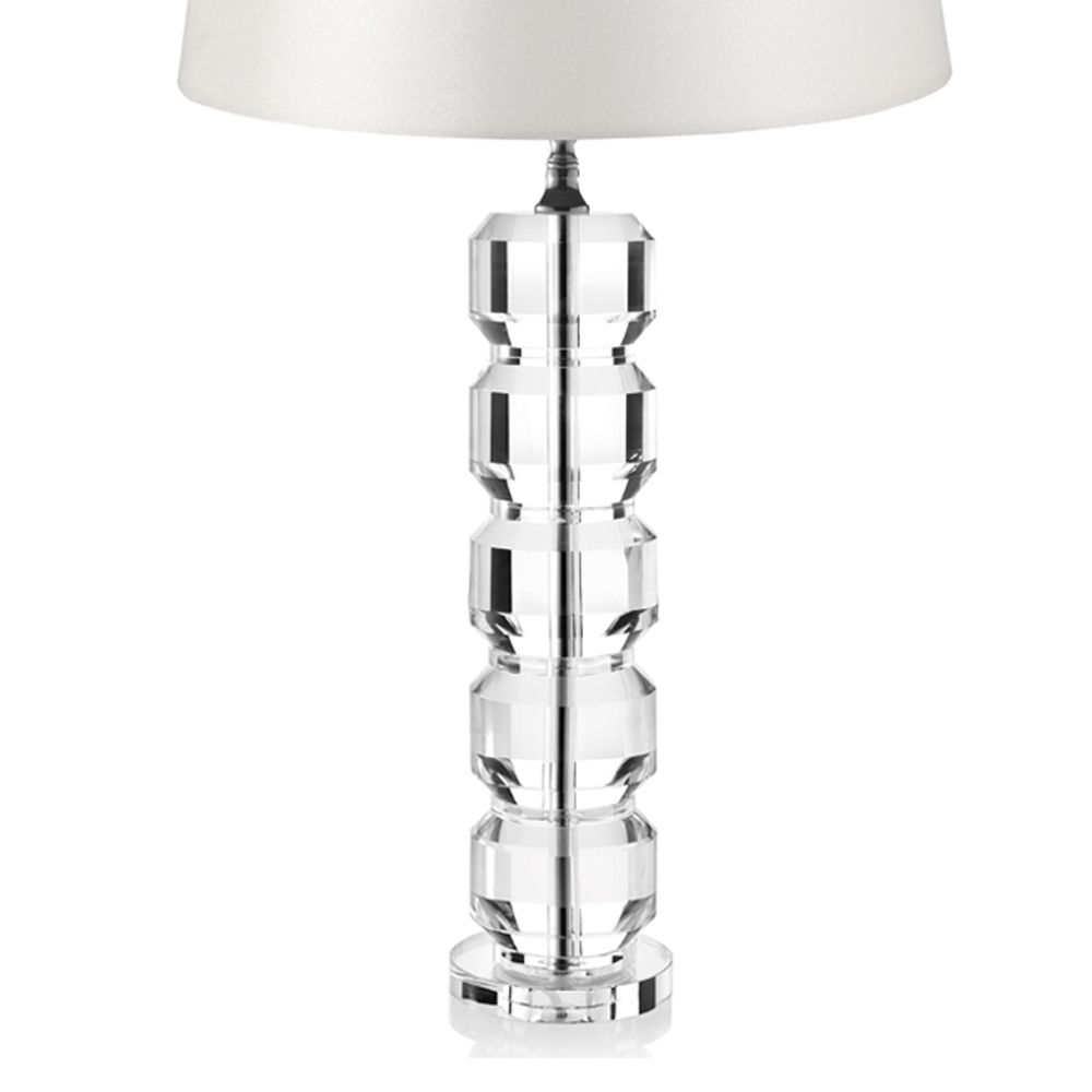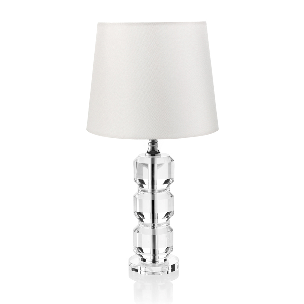 Klassische Design-Tischlampe aus Kristall mit zylindrischem Lampenschirm.
