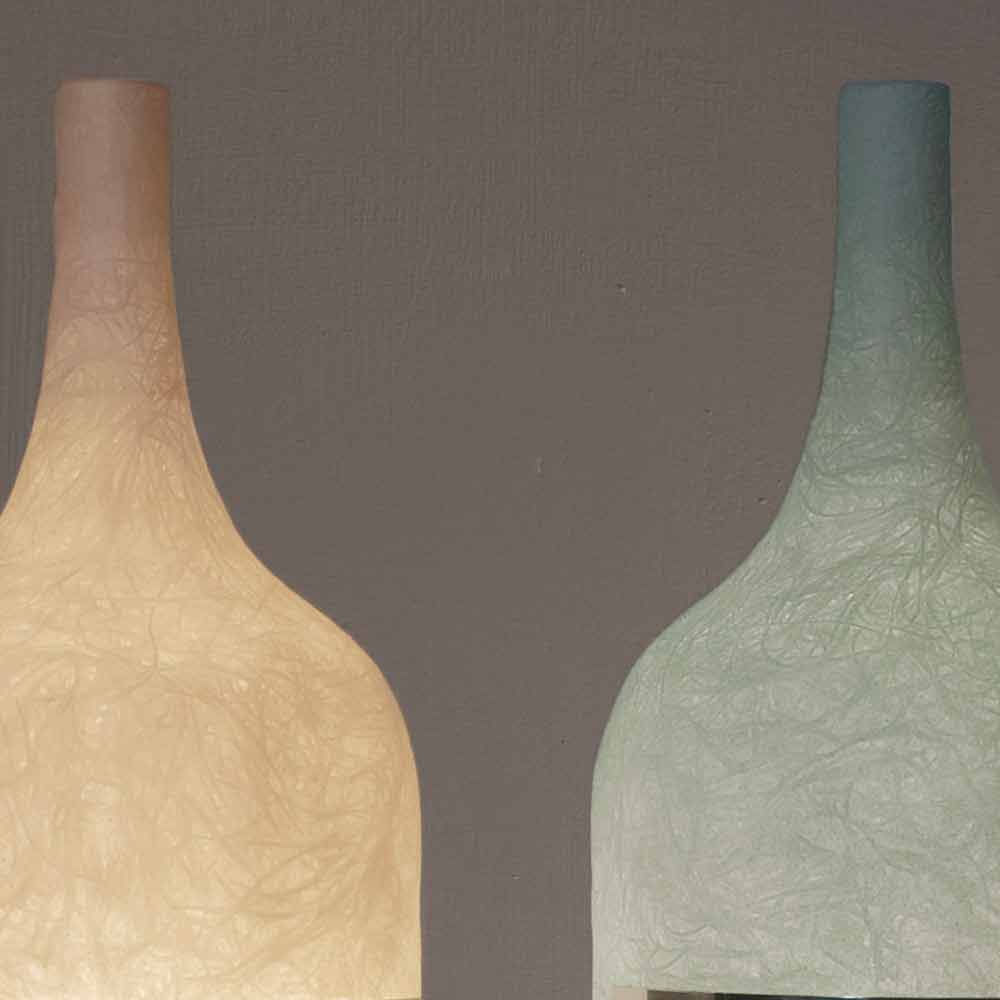 Die Luce Liquid 1 Tischleuchte ist berühmt für die Schönheit ihres schlanken Lichts, das in der Flasche enthalten ist.
