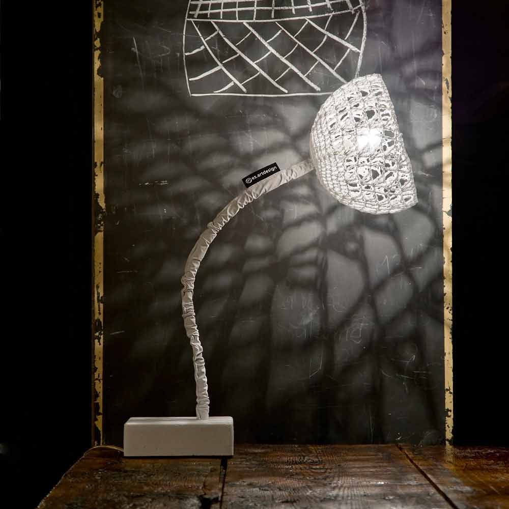 Hochmoderne Tischlampe von In.es.artdesign für die Trame-Kollektion aus Gusseisen, Nylonstahl und 100% weißer Baumwolle.