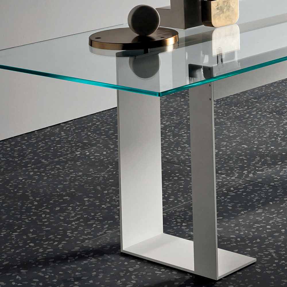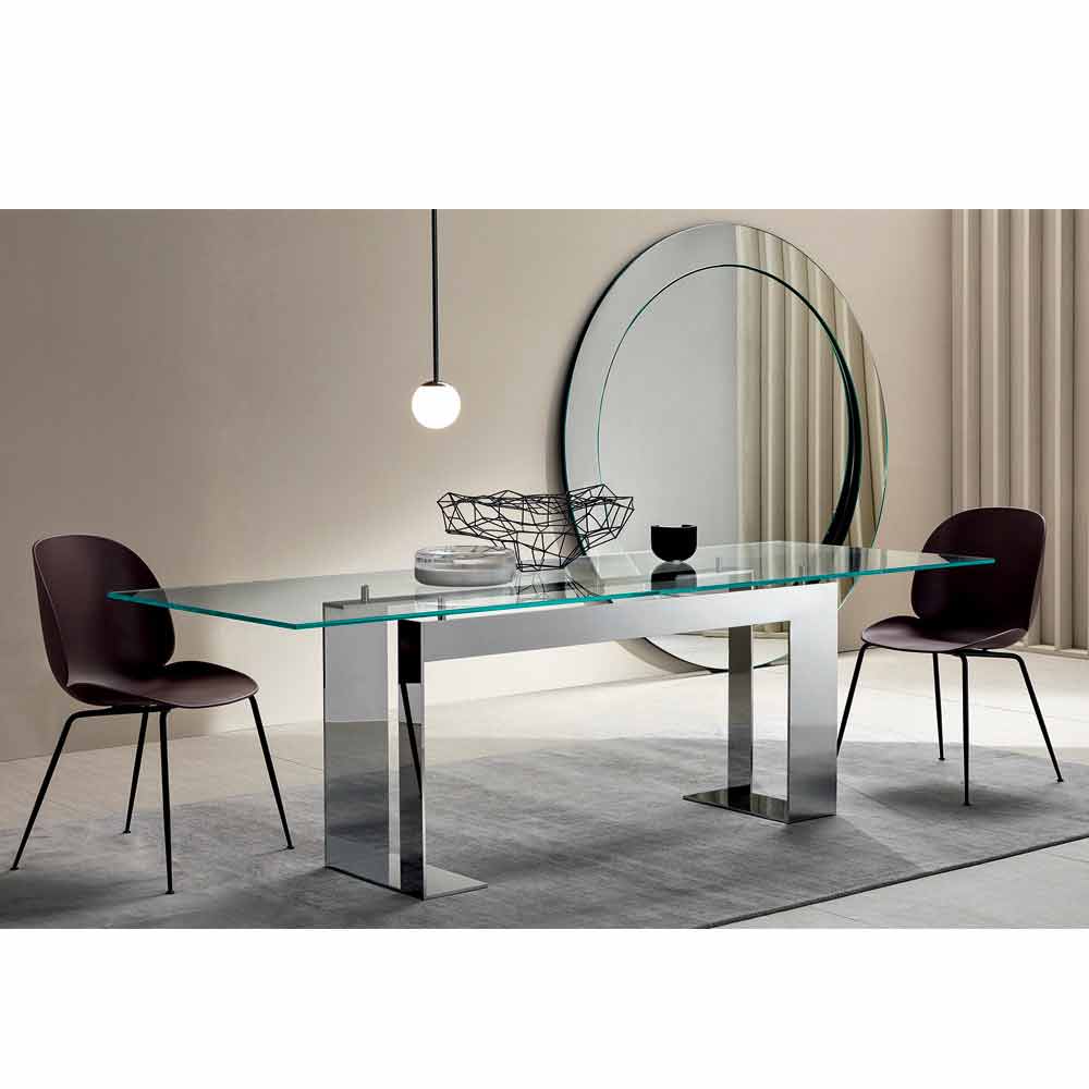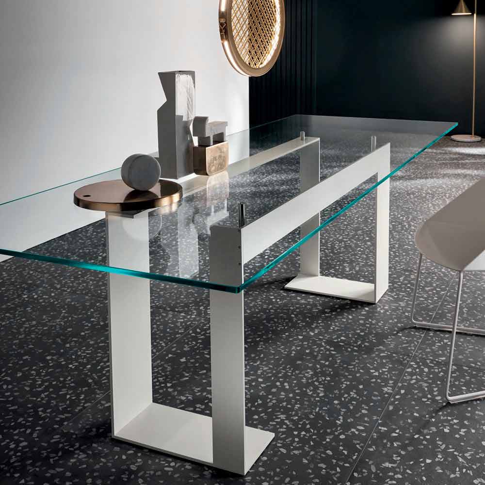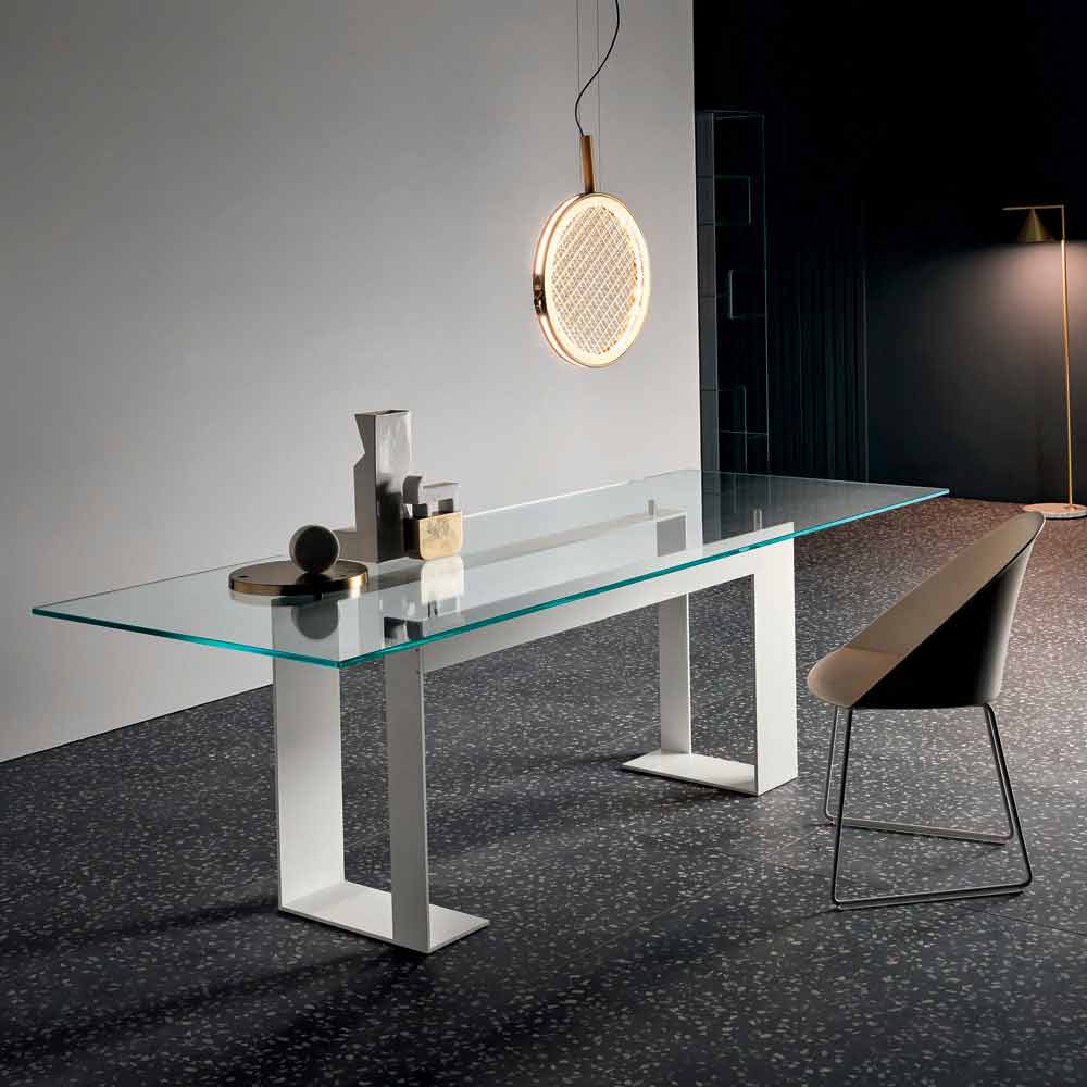 Esstisch aus extra klarem Glas und Metallbeinen, 4 Abmessungen made in Italy.
