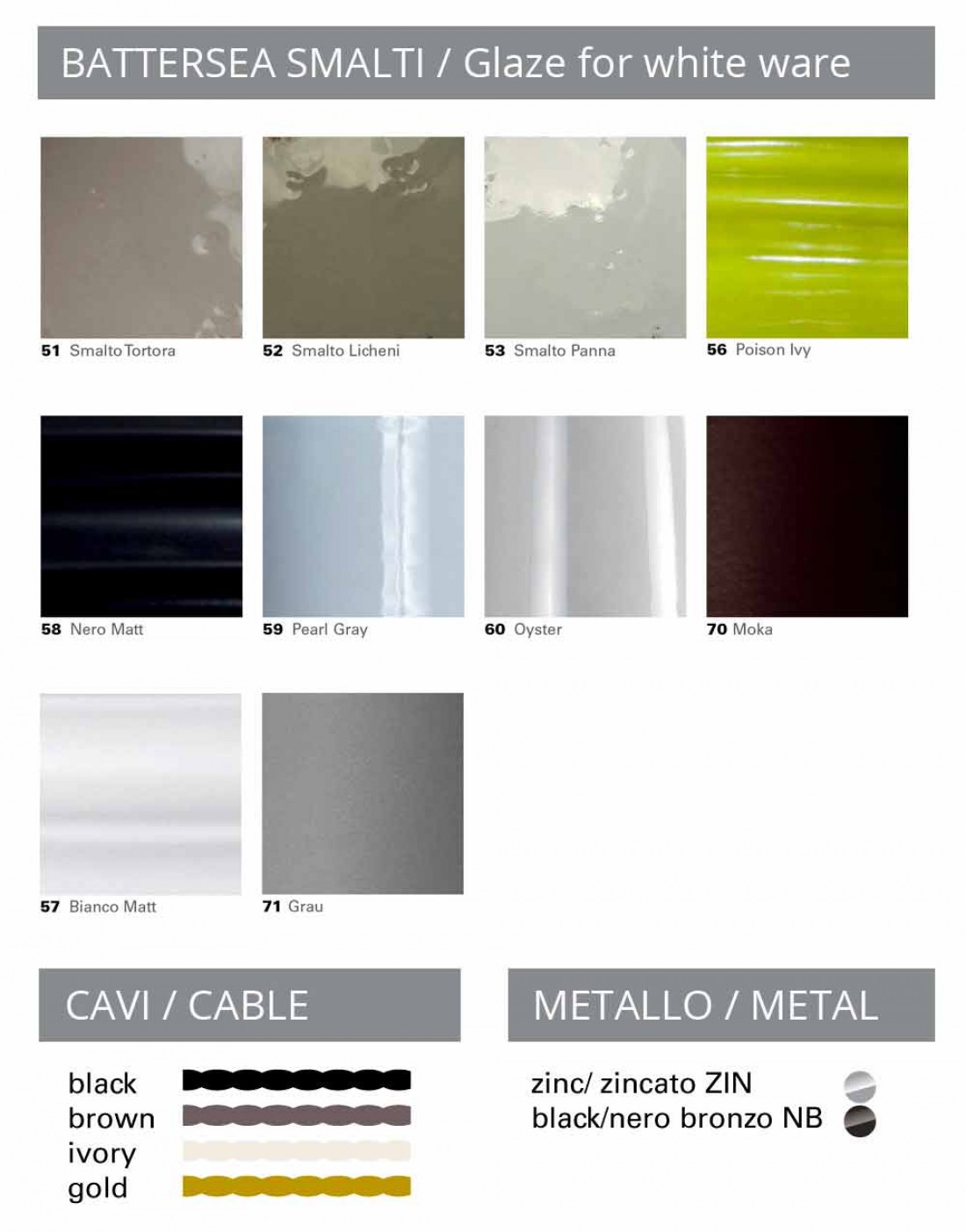 Battersea ist eine elegante und raffinierte Drahtaufhängung, die nach echter toskanischer Tradition aus Keramik handgefertigt wird. Das originelle Design dieser "glockenförmigen" Aufhängung und ihre Linienführung sind aktuell und modern, passend für verschiedene Umgebungen. Design-Lampe, von Retro bis modern, komplett mit einer zentralen Feder, die der Aufhängung diese einzigartige und originelle Eigenschaft verleiht. Aus hochwertigen Materialien hergestellt, ist Battersea in verschiedenen Ausführungen erhältlich und garantiert einen direkten Lichtstrahl.