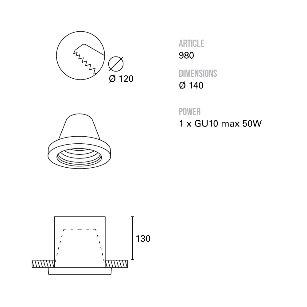 Leuchtmittel : 1x GU10 max. 50 W – nicht im Lieferumfang enthalten