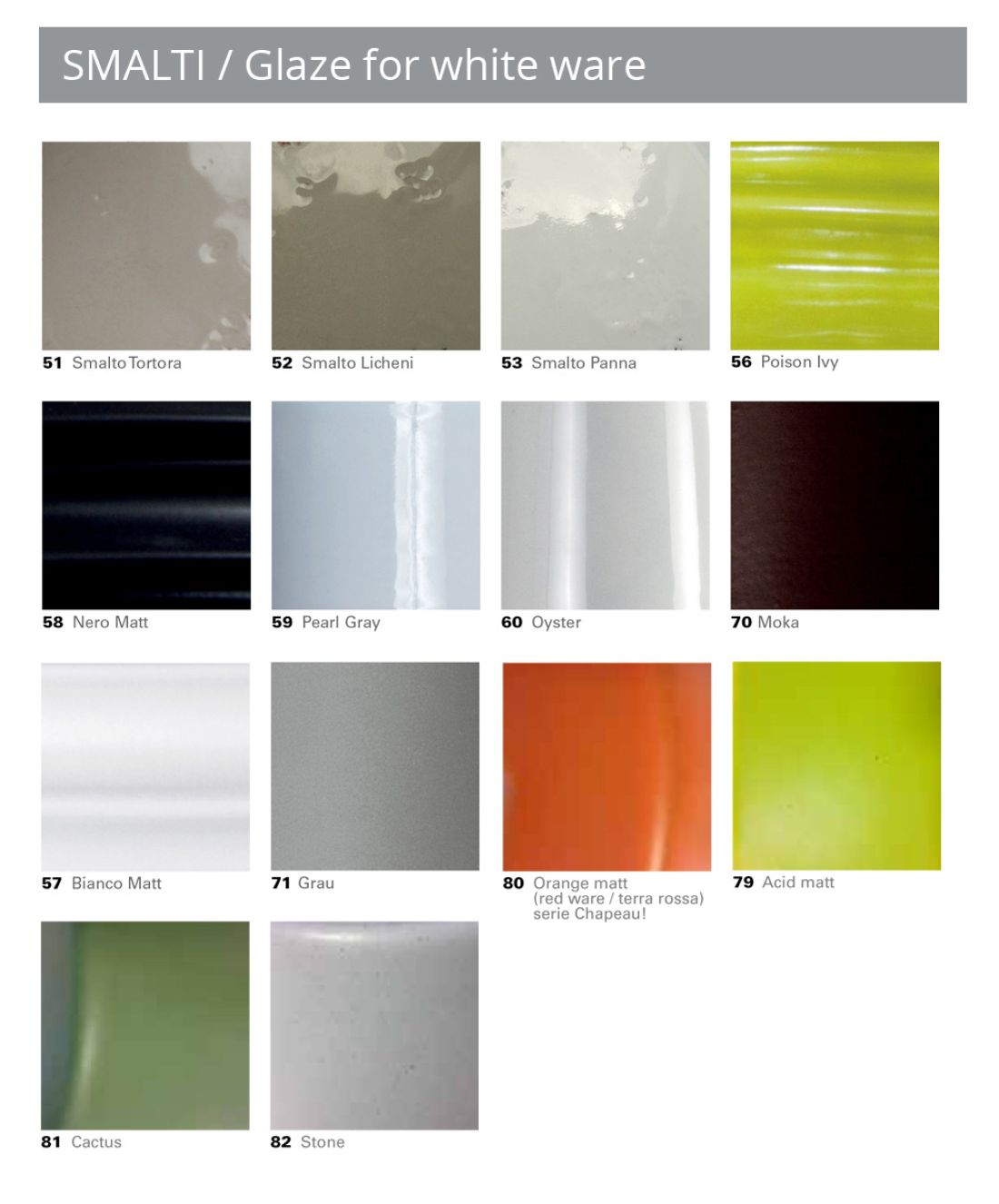 Das Modell besteht aus einem zentralen Zylinder, der den elektrischen Anschluss enthält, von dem weitere seitliche Zylinder in verschiedenen Positionen abzweigen. Es besteht aus gegossener weißer Keramik, ist emailliert und bei über 1000 Grad doppelt gebrannt. Die Metallteile sind in verschiedenen Farben gehalten, darunter Weiß und Orange, inspiriert von den ersten Industrieprodukten der 60er Jahre, oder fluoreszierendes Grün wie die Warnkleidung der Straßenarbeiter.