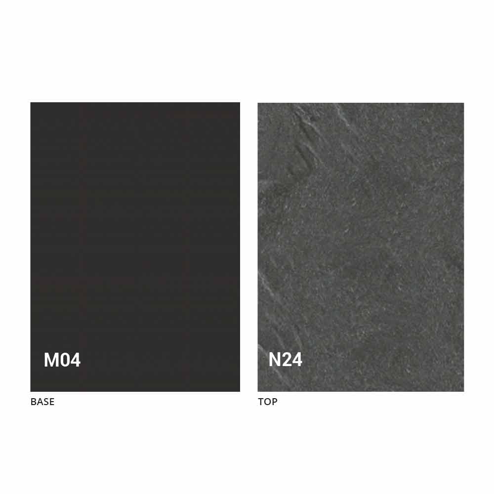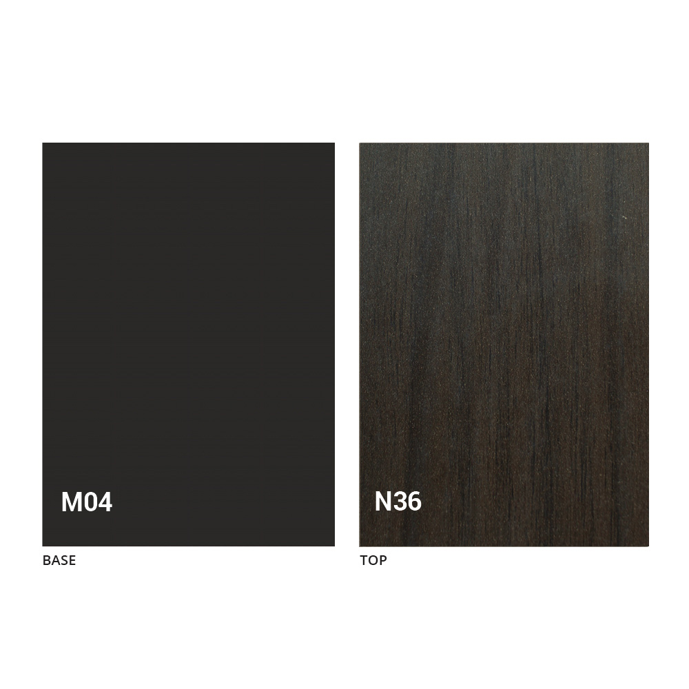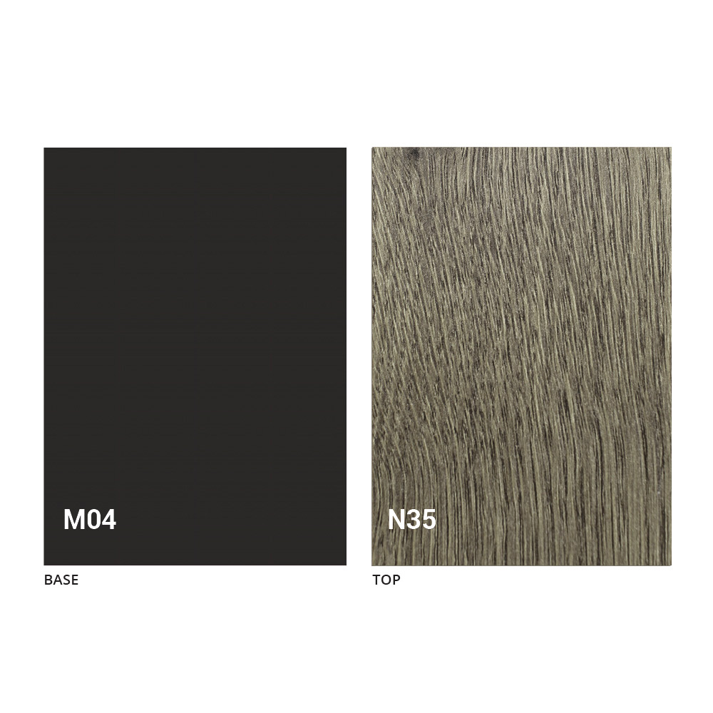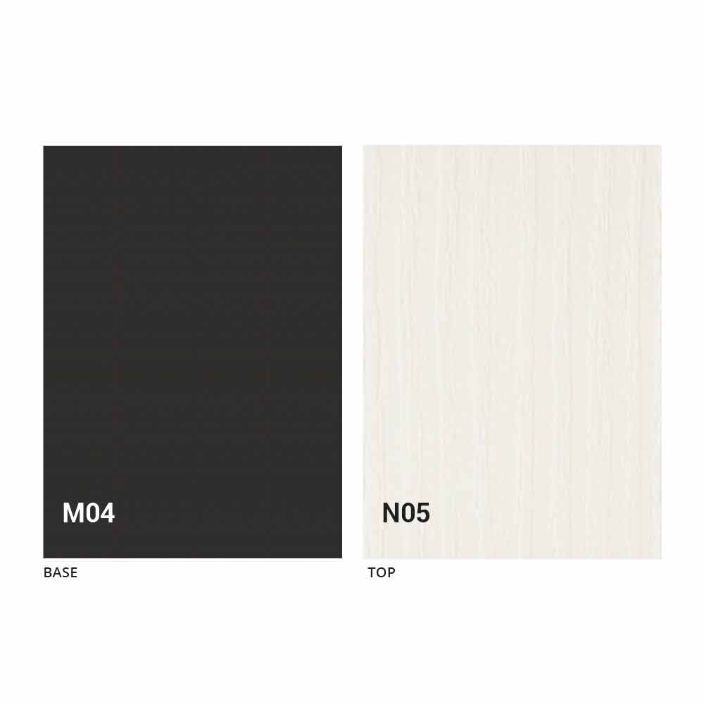 Gekennzeichnet durch eine Platte aus Melaminholz (Dicke 12 cm) und einem mattschwarz lackierten Stahlsockel .