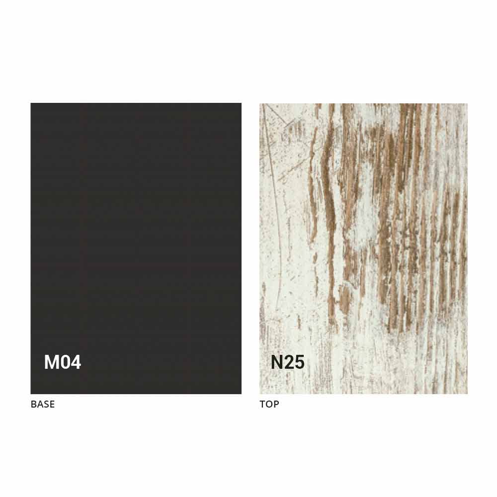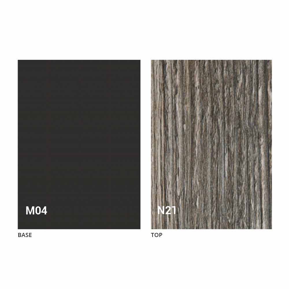 • Tischplatte aus aschgrauem, harzbeschichtetem Holz;