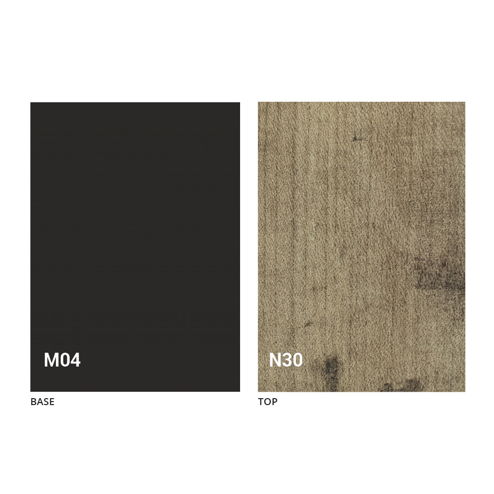 • Tischplatte aus Mokka-Ulme-Melamin.