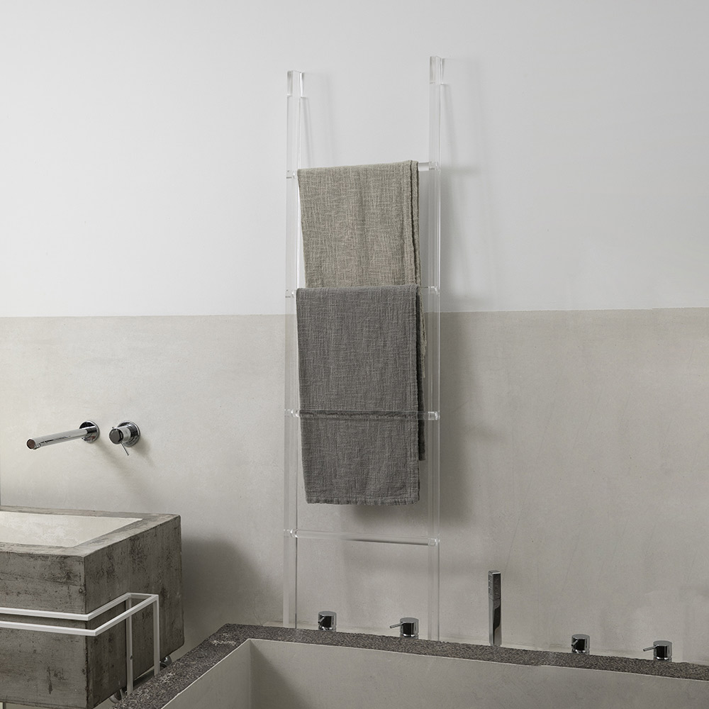 Badetuchleiter aus transparentem Acrylglas, 2 Größen made in Italy.