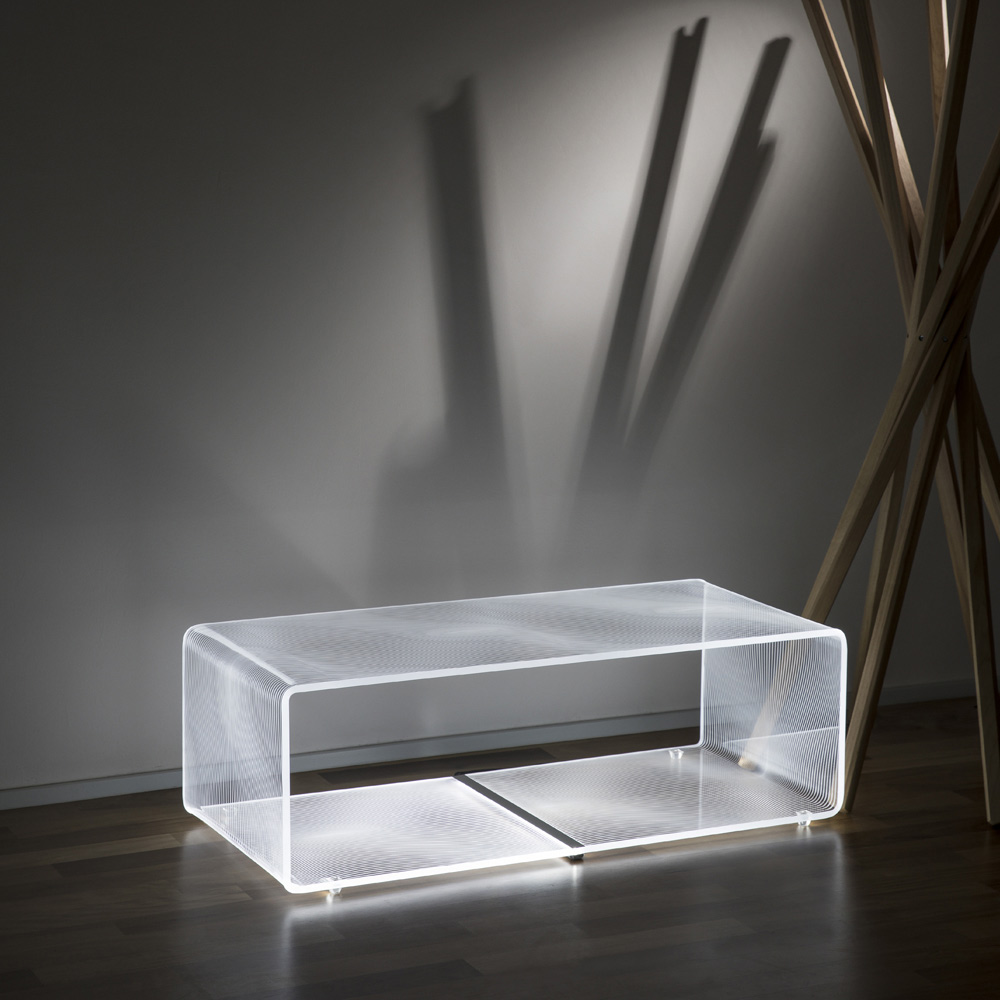 LED-Streifenlichttisch aus transparentem Acryl 2 Varianten, hergestellt in Italien.