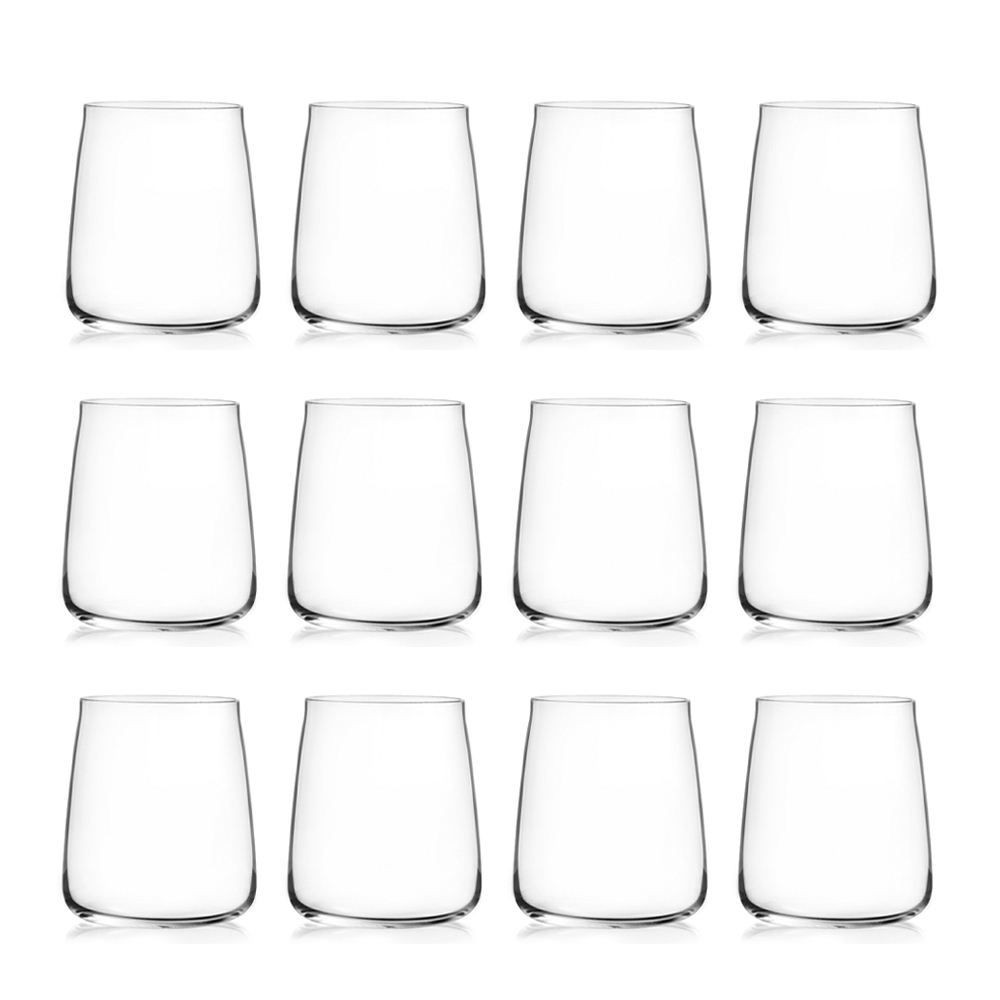 Tumbler Wassergläser in minimalem Öko-Kristall, 12 Stück made in Italy.