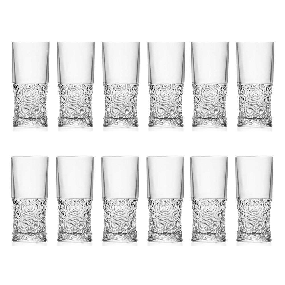 Longdrinkgläser aus Öko-Kristall mit runder Dekoration 12 Stück made in Italy.