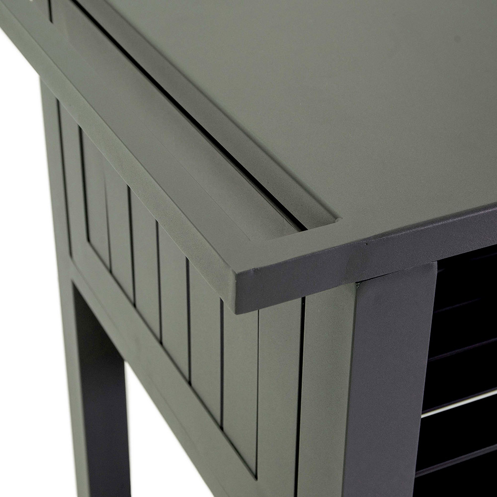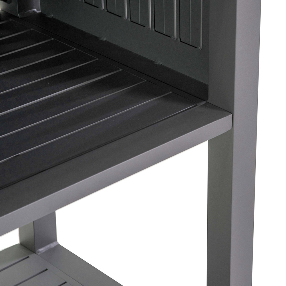 Mit einer großen Arbeits- und Ablagefläche bietet das Design ein praktisches oberes Regal zum Vorbereiten und Servieren, ein mittleres Regal, um Utensilien und Zubehör griffbereit zu halten, und ein großes unteres Regal, das sich perfekt für die Aufbewahrung von zusätzlichen Vorräten oder großen Gartengeräten eignet.