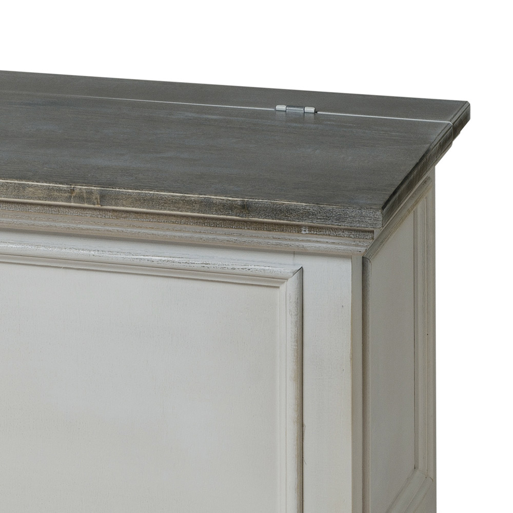 ORDENTLICHE WARTUNG UND REINIGUNG: Stauben Sie die Möbel mit einem trockenen Tuch ab. Vermeiden Sie scheuernde und/oder lösungsmittelhaltige Produkte. Stellen Sie keine Pfannen oder andere Gegenstände, die Hitze abgeben, auf die Möbeloberfläche. Wenn Sie dem Möbelstück neues Leben einhauchen möchten, können Sie spezielles Möbelwachs verwenden und es mit einem Wolllappen auftragen.