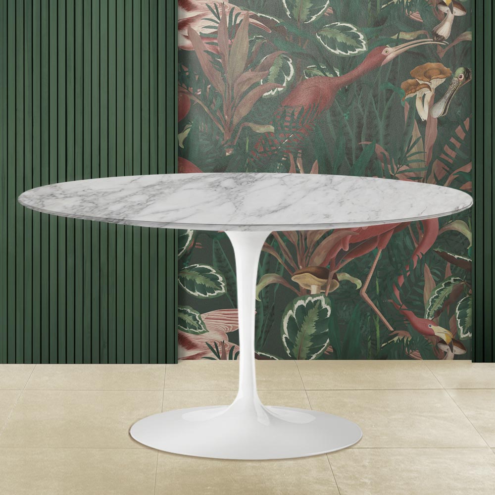 ungewöhnlichen ovalen Form und dem für die Tischplatte verwendeten Arabeskenmarmor verleiht dem Couchtisch einen Hauch von