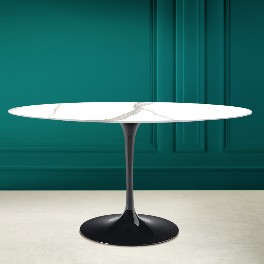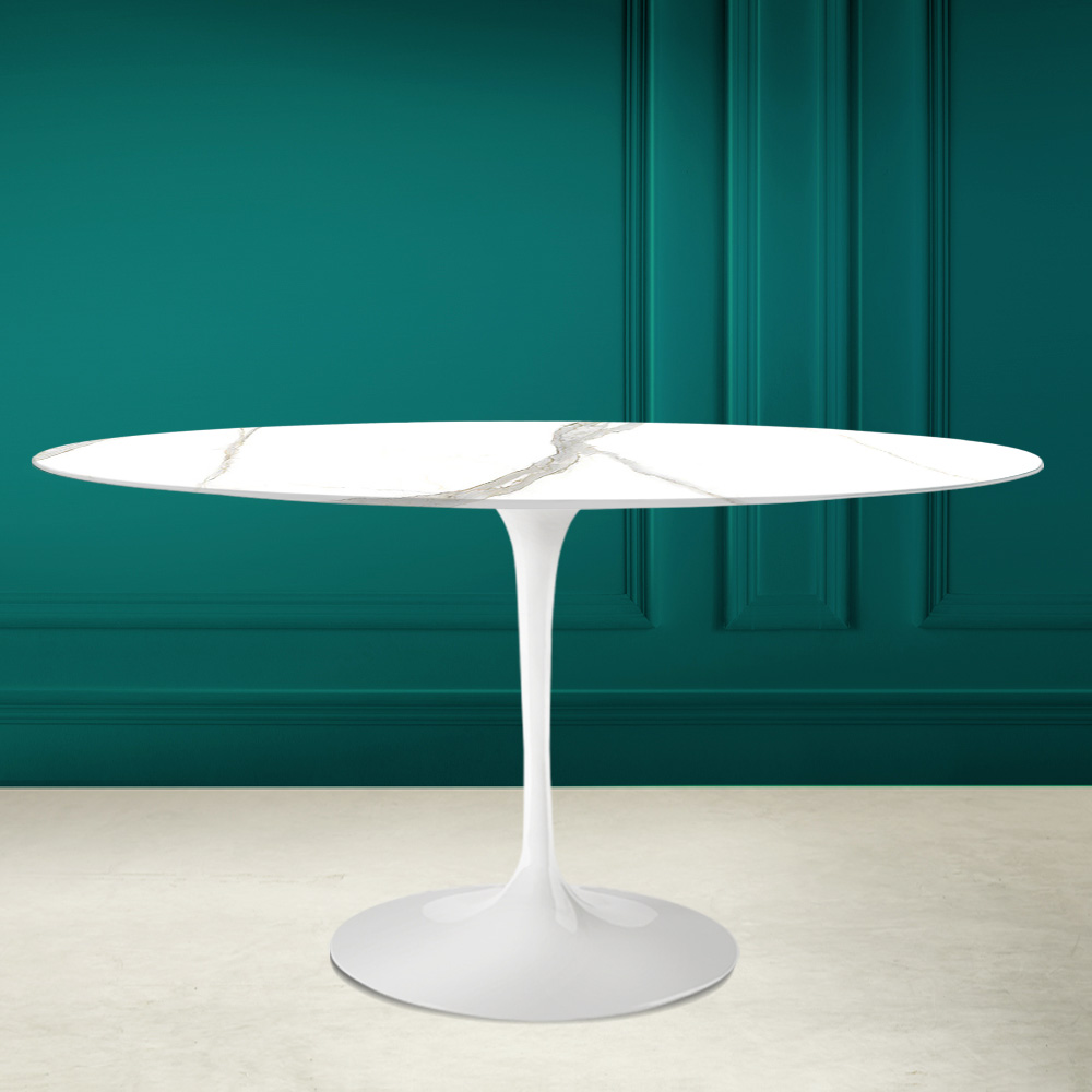 Esstisch mit ovaler Platte aus Calacatta-Michelangelo-Keramik Made in Italy