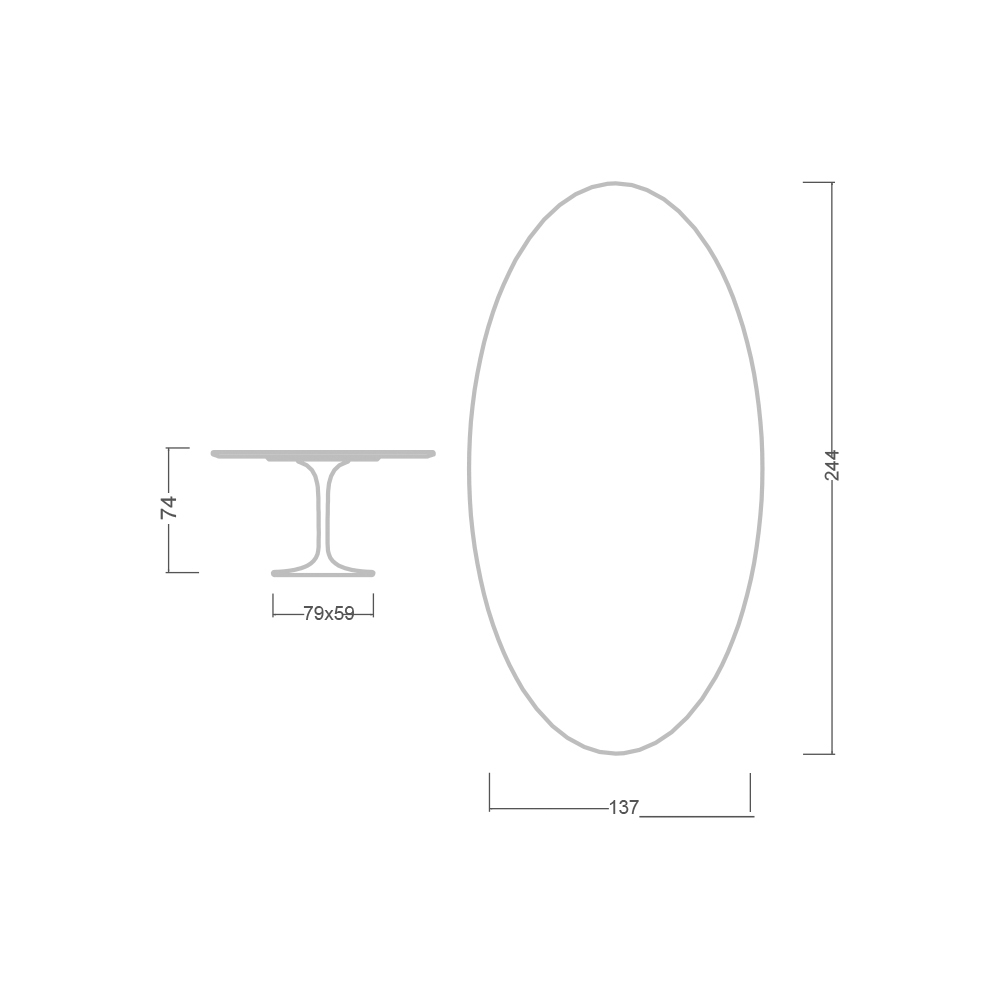 - Tischplatte: 244 x 137 / Ovaler Sockel: 79 x 59 cm x H 73 cm