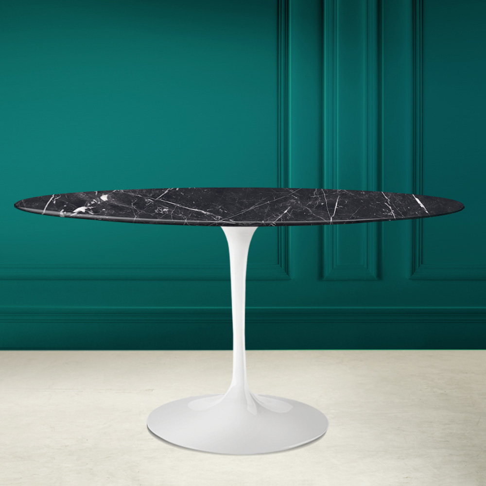 poliertem Aluminiumsockel. Dieser Tisch ist das perfekte Element, um jedem Wohnzimmer und jeder Küche dank der ovalen Form und der Marquinia-Keramik eine originelle Note zu verleihen. Die