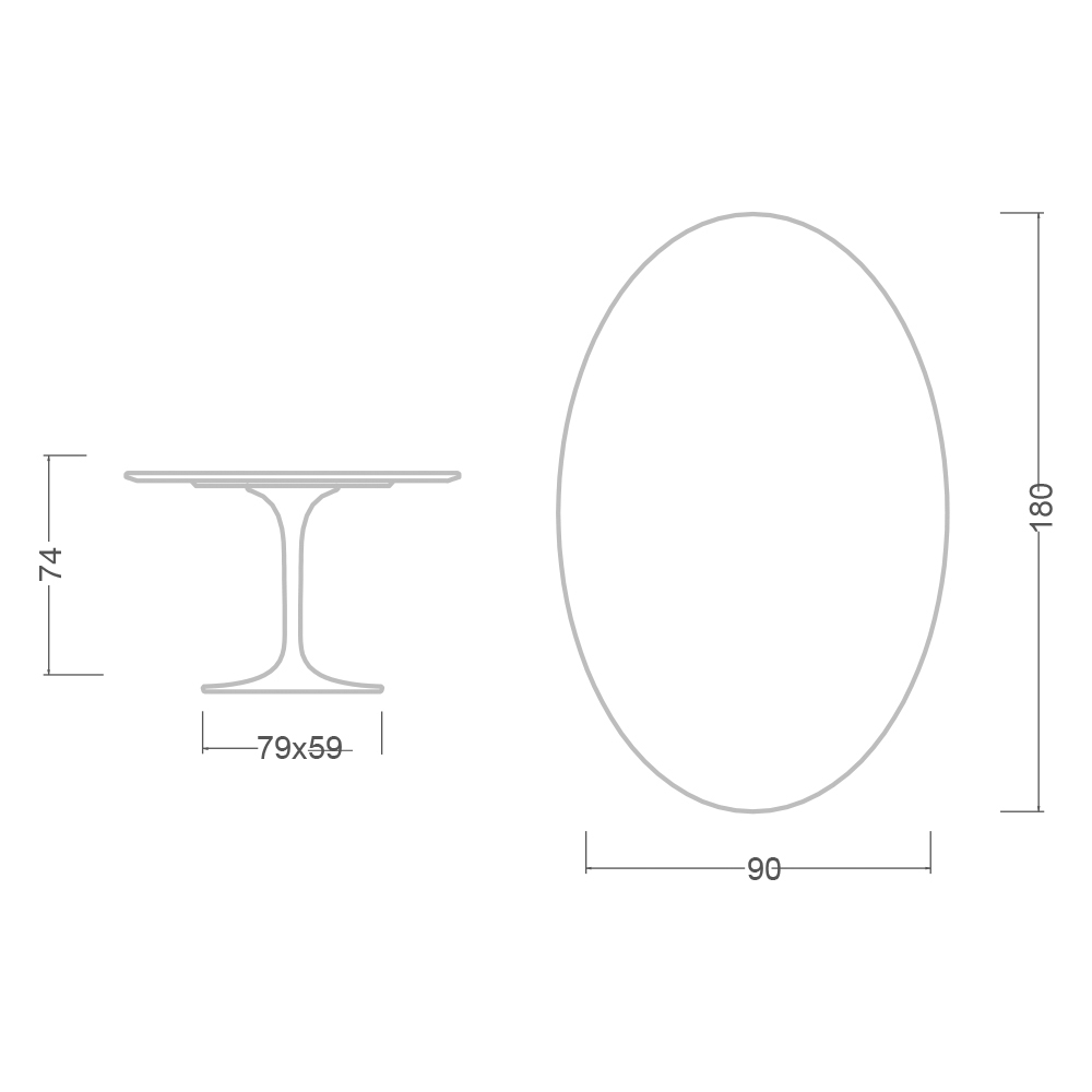 - Oberteil: 180cm x 90cm - Ovaler Sockel: 79cm x 59cm x Höhe 74cm
