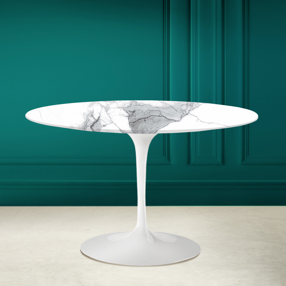 Esstisch aus Statuario-Keramik und poliertem Aluminium Made in Italy