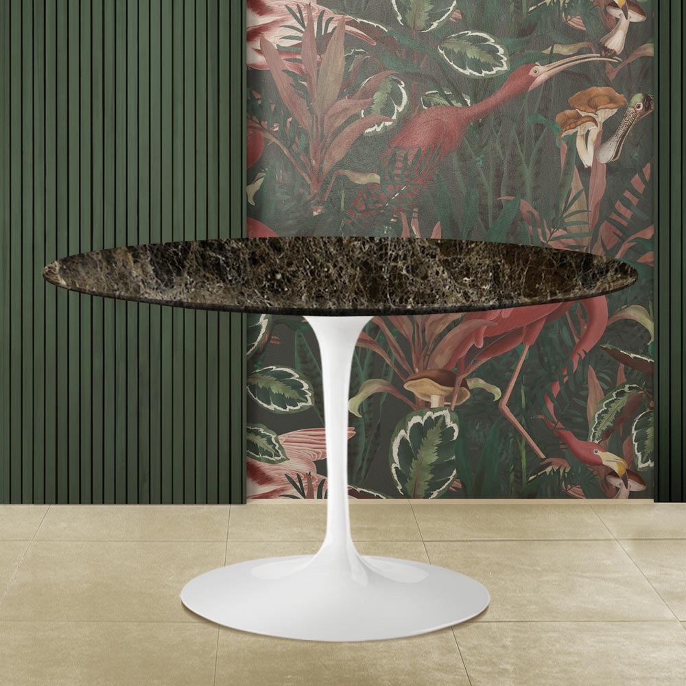 Durchmesser des Fußes: 70 cmDiese Marmorplatte ist standardmäßig mit einem wasserabweisenden Mittel namens Hydrex und einer Wachsschicht, die die Absorption von Flüssigkeiten verlangsamt, behandelt.