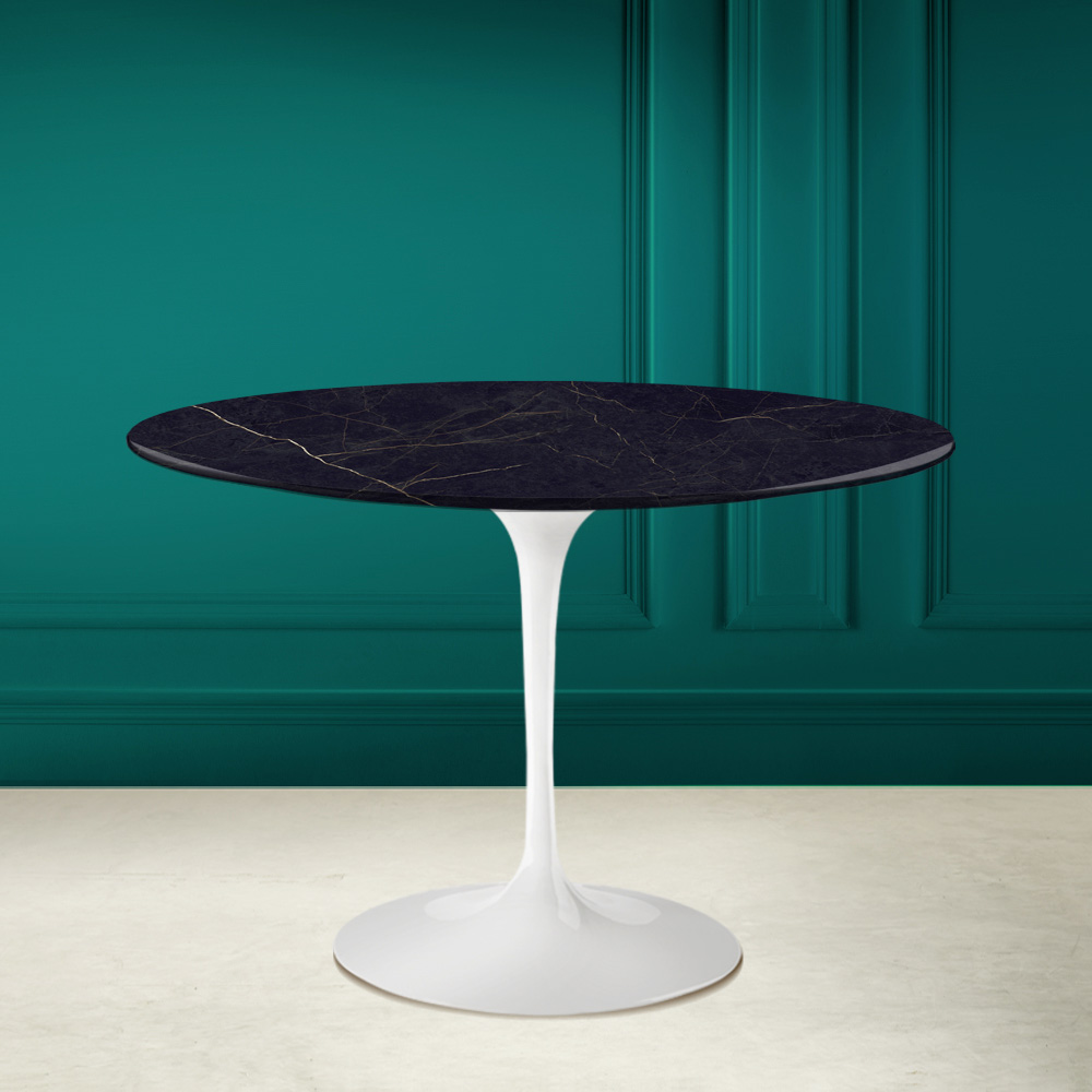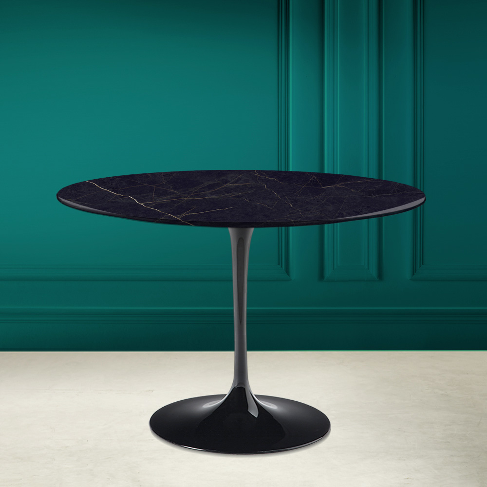 Esstisch mit runder Platte aus Keramik noir laurent und Untergestell aus poliertem Aluminium Made in Italy