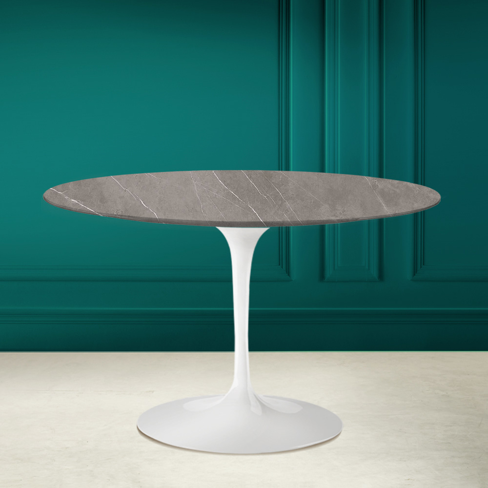 linearen und raffinierten Ausführungen schaffen ein Element, das sich leicht in jeden Einrichtungsstil in jedem Wohnzimmer und jeder Küche einfügen lässt. Die Verbindung von grauer Steinkeramik und poliertem Aluminium macht diesen Tisch