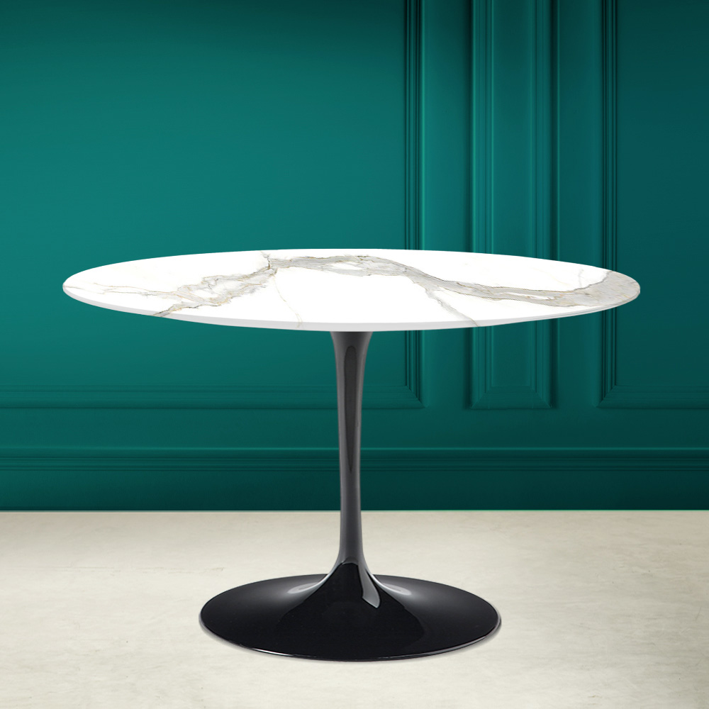 linearen und raffinierten Ausführungen schaffen ein Element, das sich leicht in jeden Einrichtungsstil in jedem Wohnzimmer und jeder Küche einfügt. Die Verbindung von calacatta michelangelo Keramik und poliertem Aluminium macht diesen Tisch
