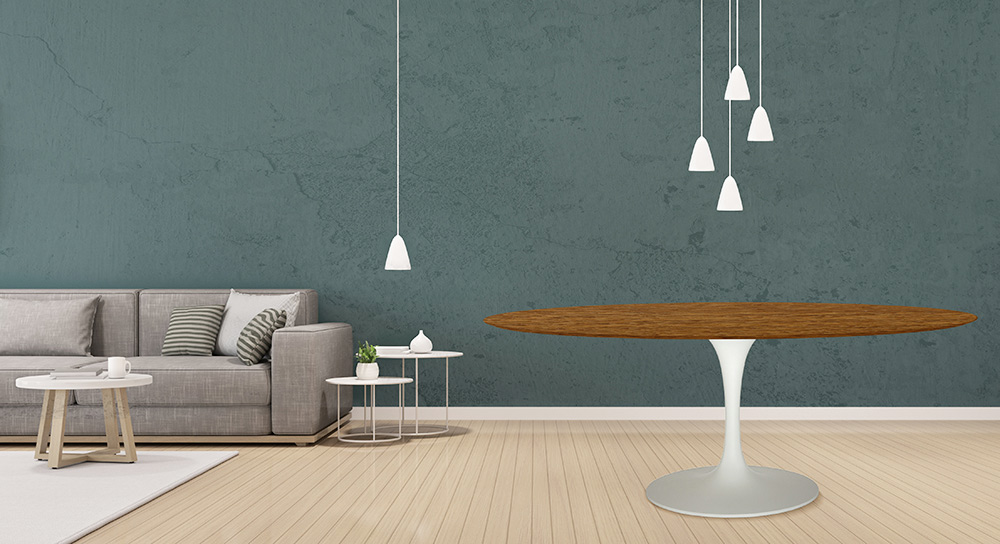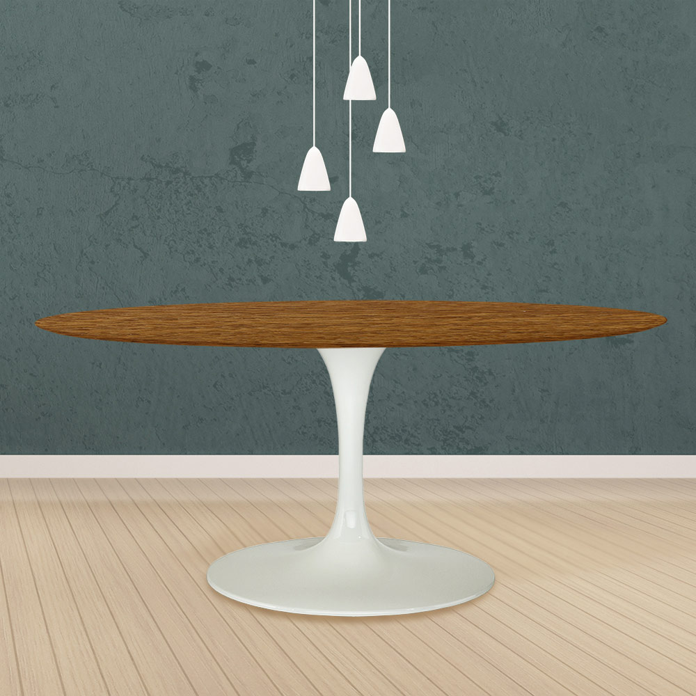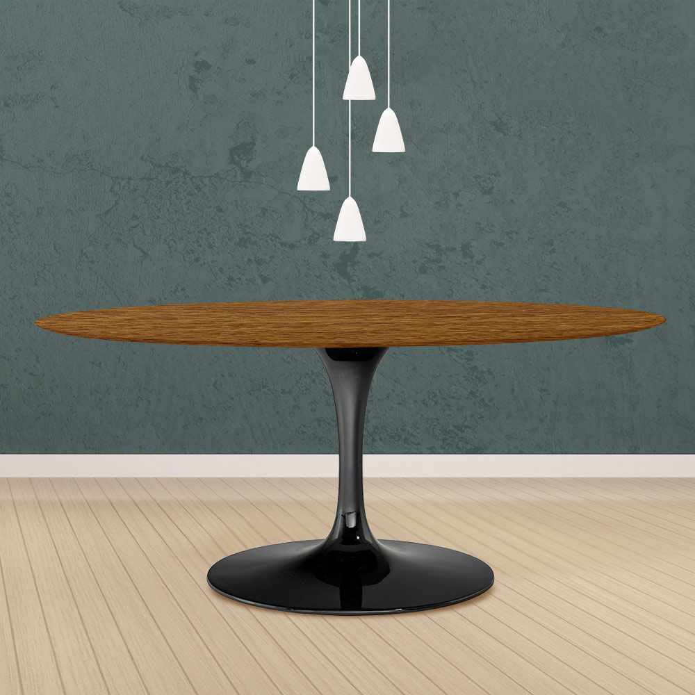 ovalen Form und der Platte aus heller Walnuss gebeizter Eiche verleiht diesem Tisch einen