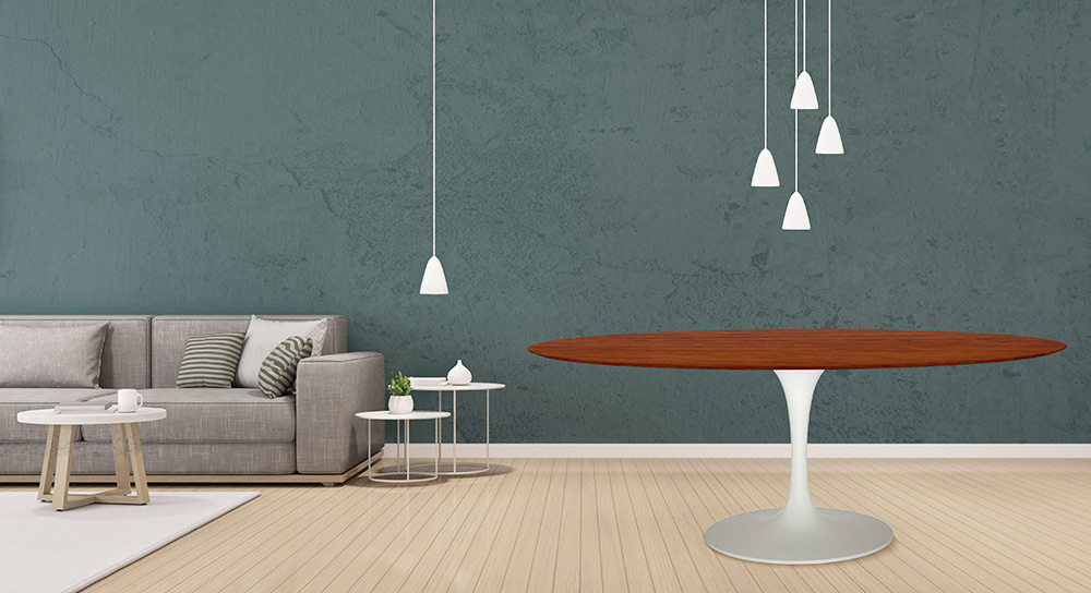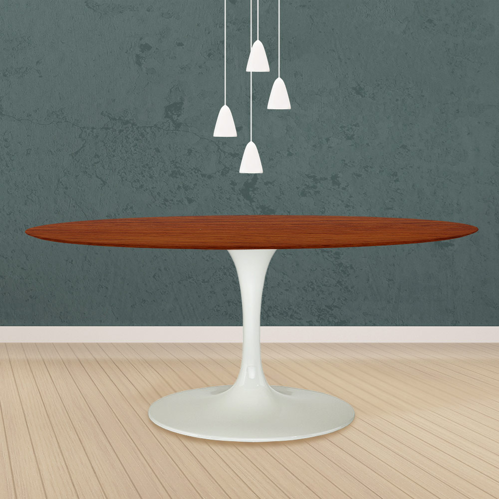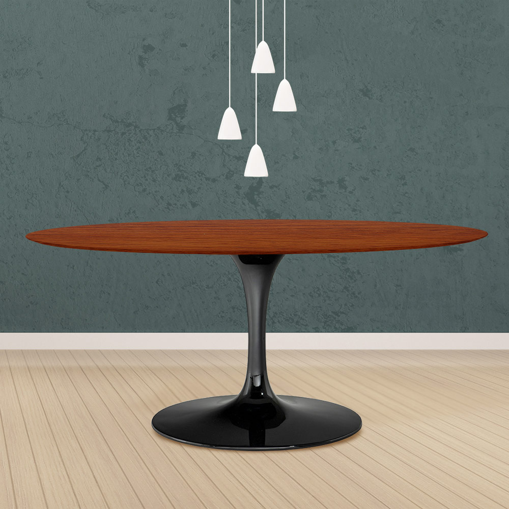 ovalen Form und der Platte aus kirschbaumgebeizter Eiche verleiht diesem Tisch einen