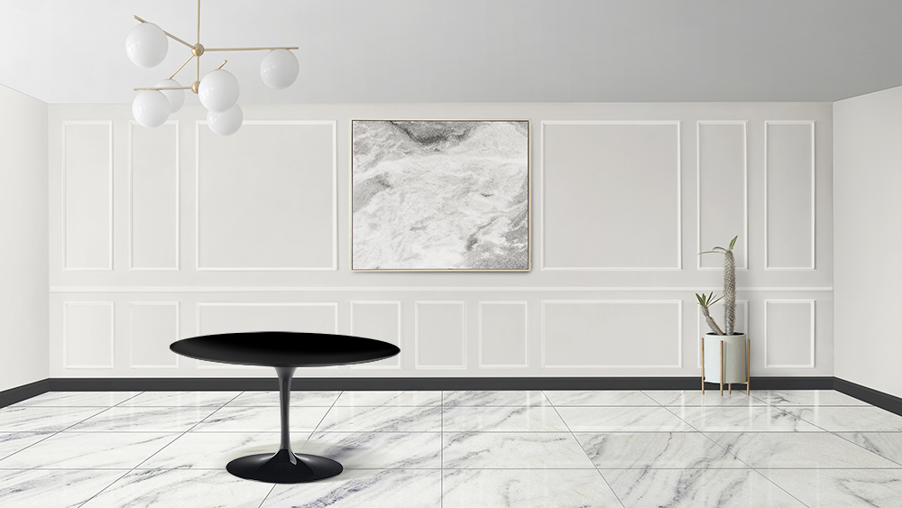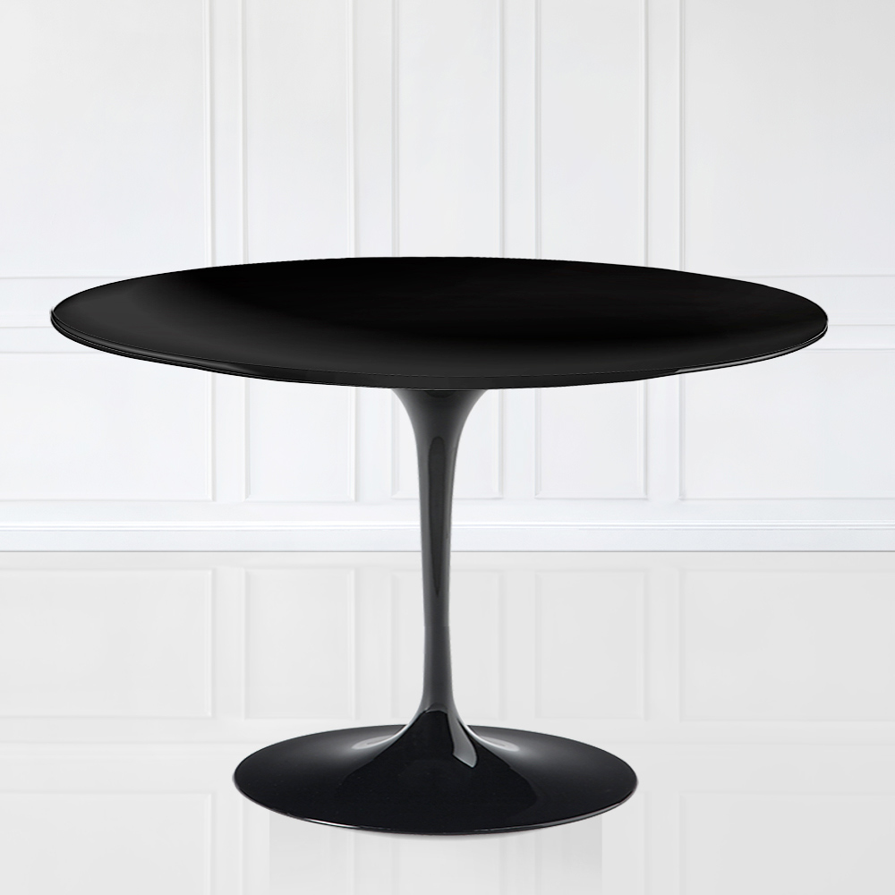 Runder Esstisch mit schwarzer Flüssiglaminatplatte und schwarzem poliertem Aluminiumfuß Made in Italy
