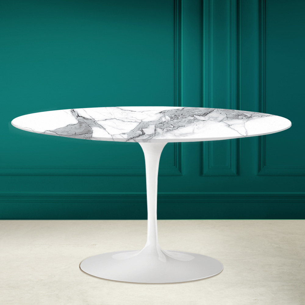 Sehr hoher ovaler Couchtisch aus Statuario-Keramik, hergestellt in Italien