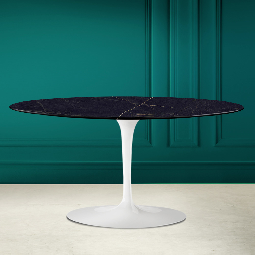 Couchtisch mit ovaler Platte aus Noir-Laurent-Keramik und Untergestell aus poliertem Aluminium, hergestellt in Italien