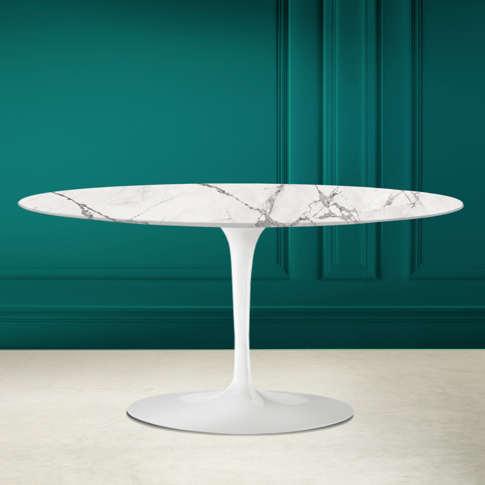 unsichtbarer Platte aus ausgewählter Keramik, mattem Statuarietto-Marmoreffekt und Untergestell