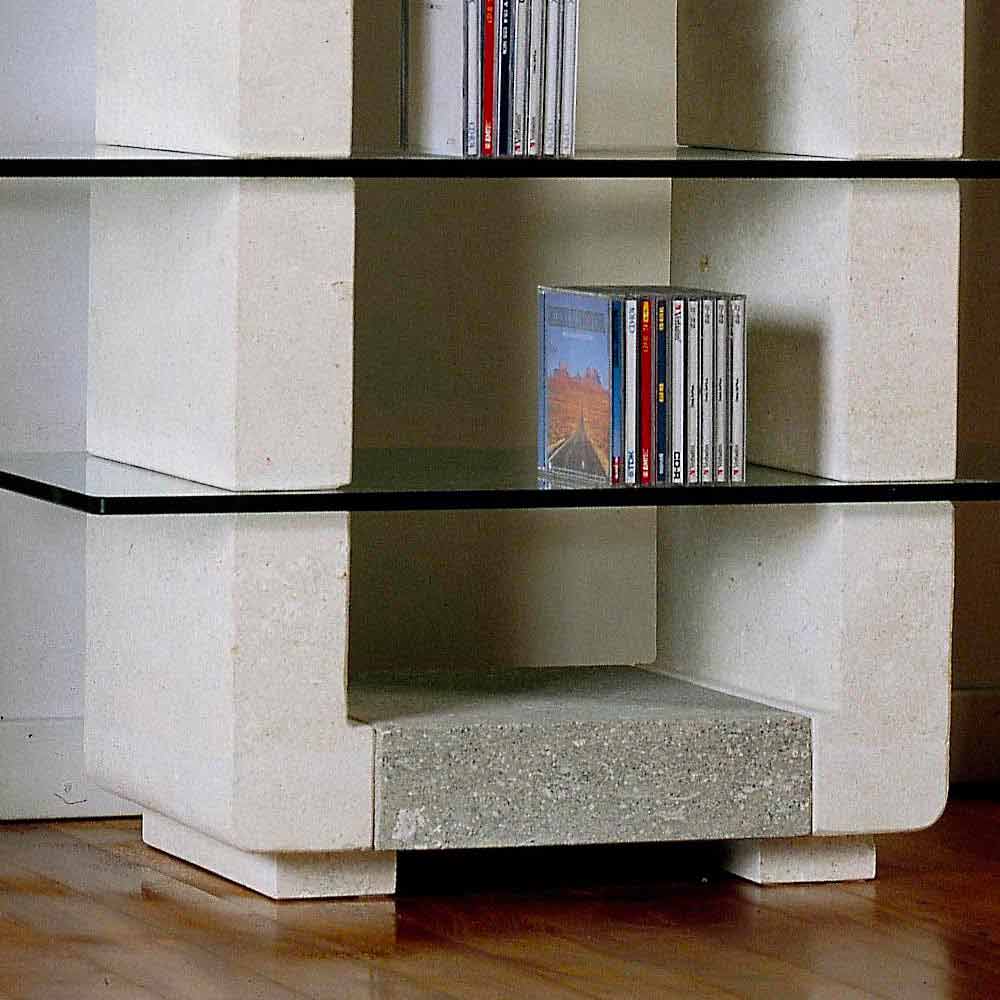 Der TV-Möbel ist komplett Made in Italy und ist aus Stein aus Vicenza und aus Kristall hergestellt.